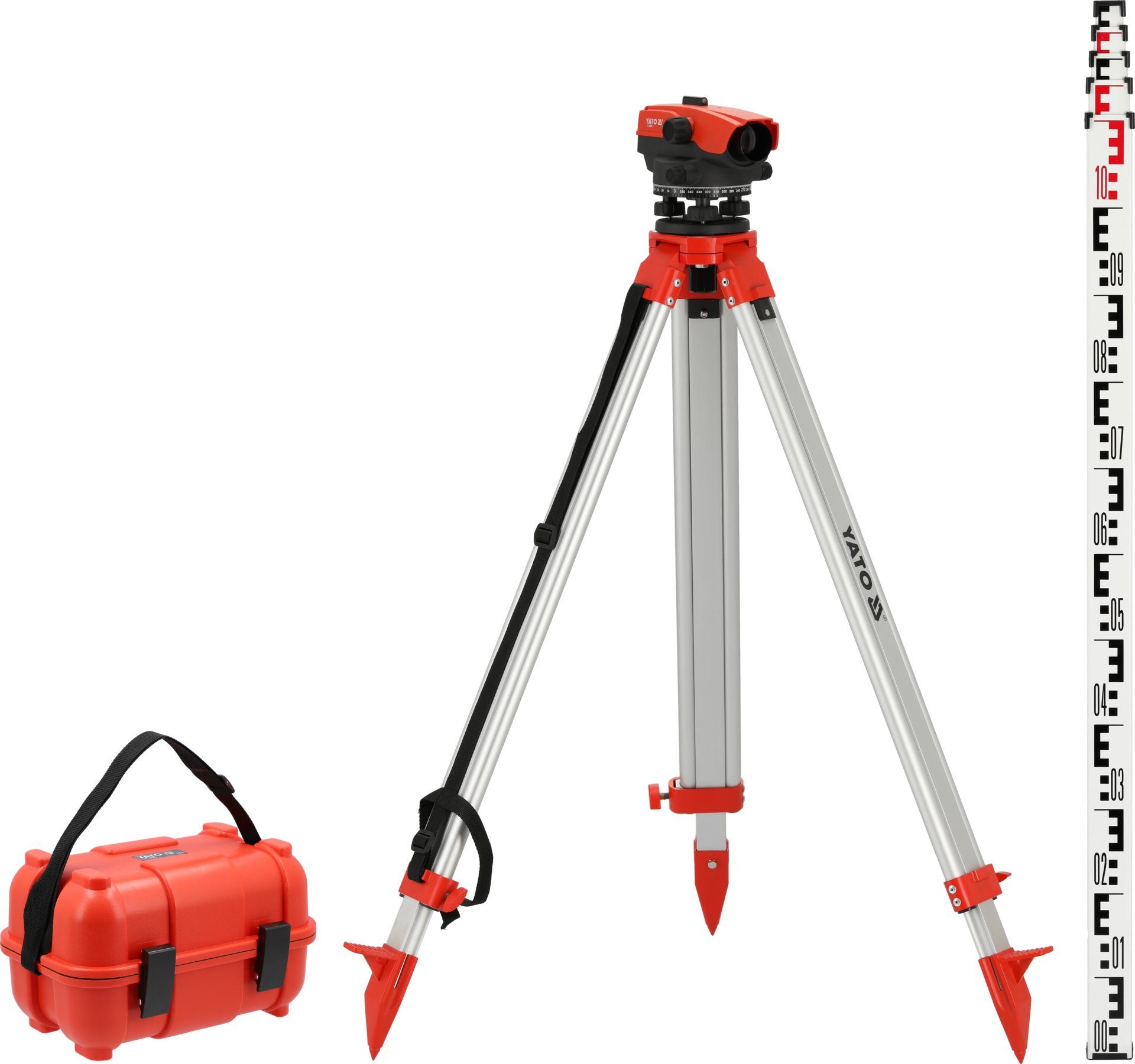 Optisches Nivellier für Vermessung und Bauwesen, komplett mit Stativ und 5-Meter-Messlatte. Werkseitig kalibriert, sofort einsatzbereit. Ausgestattet mit einem IP66-zertifizierten Gehäuse, das vollständigen Schutz gegen Staub und starken Regen bietet. Hochwertige Optik, ein pneumatisch gedämpfter Kompensator und eine Reichweite von bis zu 110 Metern garantieren einen wiederholbaren, präzisen Betrieb unter allen Bedingungen.