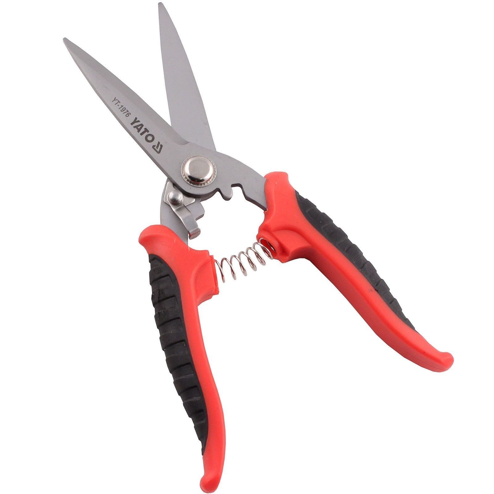Robuste Schere aus rostfreiem Werkzeugstahl mit einer Klingenlänge von 65 mm. Geeignet zum Schneiden von Kunststoff, Pappe, Draht, Weißblech und vieles mehr. Der perfekte Helfer für Lager-, Werkstatt-, Hobby- oder Gartenarbeiten.