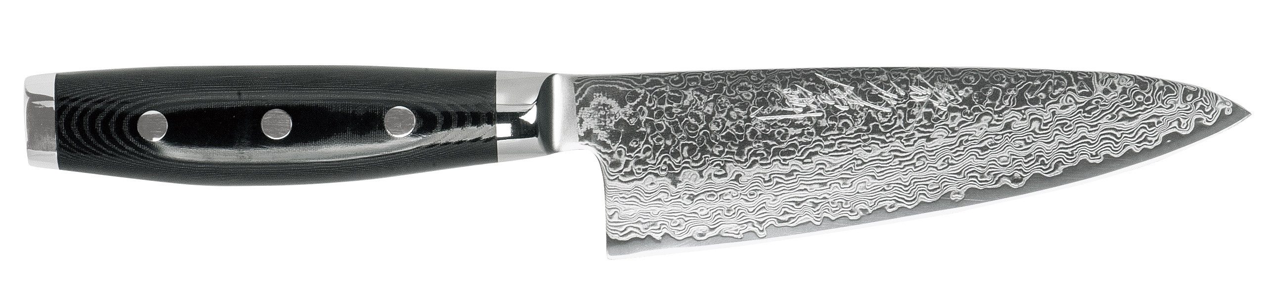 Das Kochmesser ist ein Всеskönner und darf auch in Ihrer Küche nicht fehlen. Kochmesser Klingenlänge: 15 cm Schneidlage: SG2 Pulverstahl 101 Lagen Damaszener Stahl Klingenhärte: 63 HRC Schliff: beidseitig Griffmaterial: Canvas Micarta Ergonomisch geformter Handgriff aus Leinen Micarta Für Rechts- und Linkshand Handgefertigt in Seki Japan Das Messer wird in einer hochwertigen Verpackung geliefert 1. Bessere Verarbeitung und lange Tradition. Yaxell ist seit 1932 einer der führenden japanischen Messerhersteller. Durch die laufende Впередentwicklung und Innovation hat Yaxell sehr viel zur besseren Kochkultur beigetragen. Damastmesser von Yaxell sind weltweit äußerst gefragt und bei Profis sowie bei ambitionierten Privatanwendern sehr begehrt 2. 101-lagige Damastklinge Gou 101 Klingen bestehen im Schnittkern aus japanischen SG2 Mikrocarbid Pulverstahl. Dieser Pulverstahlkern beinhaltet viel Kohlenstoff und erreicht dadurch eine außergewöhnliche Härte von 63 Grad Rockwell (HRC). Ummantelt wird der Kern von 50 abwechselnd weichen und harten Edelstahlschichten. Die Klingen bestehen somit aus 101 Lagen. Dieser Pulverstahl hat einen extrem hohen Reinheitsgrad und eine außerordentliche Festigkeit. Die Klinge ist daher extrem hart, kann sehr scharf angeschliffen werden und ist äußerst schnitthaltig. Das faszinierende Damastmuster spiegelt den hohen Qualitätsstandart präziser Handarbeit wieder. Durch die handwerkliche Применитьung ist jedes GOU 101 ein unverwechselbares Unikat, das es kein zweites Mal gibt. 3. Gou 101 Griff Die Griffschalen sind aus rot-schwarzem Canvas-Micarta gefertigt. Canvas-Micarta gilt weltweit als eines der besten Griffmaterialien und besteht aus Kunstharz und Leinen. Diese Materialkombination macht den Griff äußerst widerstandsfähig und unverwüstlich auch bei täglichem Einsatz. Dieses Material entspricht allen Hygienevorschriften weltweit und ist daher auch im professionellen Einsatz hervorragend geeignet. Der Griffkern und das Griffende bestehen aus Chromnickelstahl CNS 18/10. Dieses Material ist resistent gegen alle in der Küche und beim Schneidgut vorkommenden Säuren und Laugen und behält daher über sehr sehr lange Zeit die schöne Optik. Messerklinge und Messergriff bilden eine ausgewogene Einheit und Gewichtsverteilung, sodaß die Messer extrem gut in der Hand liegen und somit ein leichtes Handling ermöglichen. Als Zeichen der Wertigkeit wird am Griffende das Markenzeichen japanisch in Handarbeit tiefengraviert und gibt jedem dieser Messer eine ganz besondere Note. 4. Gebrauchsanweisung - Nach Möglichkeit immer eine geeignete Schneidunterlage aus Holz oder Kunststoff verwenden. - Gou 101 haben eine sehr feine, extrem scharfe Klinge. Diese Klingen sind nicht zum Hacken von Lebensmitteln, Gefrorenem, Knochen, extrem harte Speckschwarten usw. geeignet und sollten niemals dafür verwendet werden. - Messer in lauwarmem ( nicht heissem ) Wasser reinigen und unmittelbar danach mit einem geeigneten Tuch abtrocknen. - Zum Aufbewahren eignet sich ein Messerblock oder eine Magnetleiste. - Nicht einfach in eine Lade geben, die feine Schneide könnte beschädigt werden. - Das Messer darf nicht in den Geschirrspüler gereinigt werden. - Das Messer sicher und außerhalb der Reichweite von Kindern aufbewahren. 5. Pflege Gou 101 Damastmesser können mit allen hochwertigen Schleifmitteln, wie z.B. dem Yacxell Messerschleifer oder Schleifstein geschärft werden.