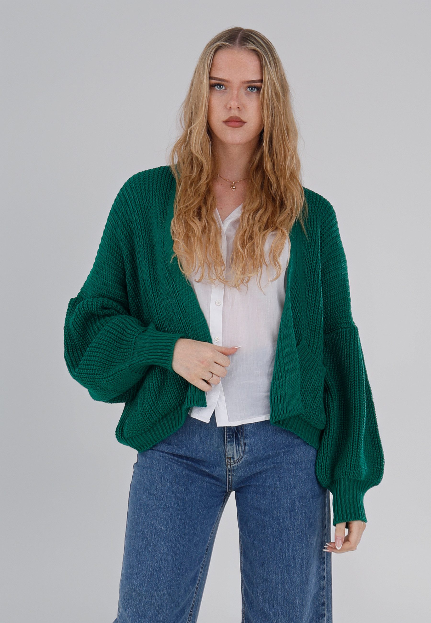 Gefertigt aus weichem, pflegeleichtem Strickmaterial aus 100 % Acryl, ist die Strickjacke formstabil, angenehm zu tragen und ideal für Übergangszeiten, kühle Sommerabende oder das Büro. Die leicht verkürzte Длина auf Hüfthöhe sorgt für eine moderne Silhouette und passt perfekt zu Jeans, Röcken oder High-Waist-Hosen.