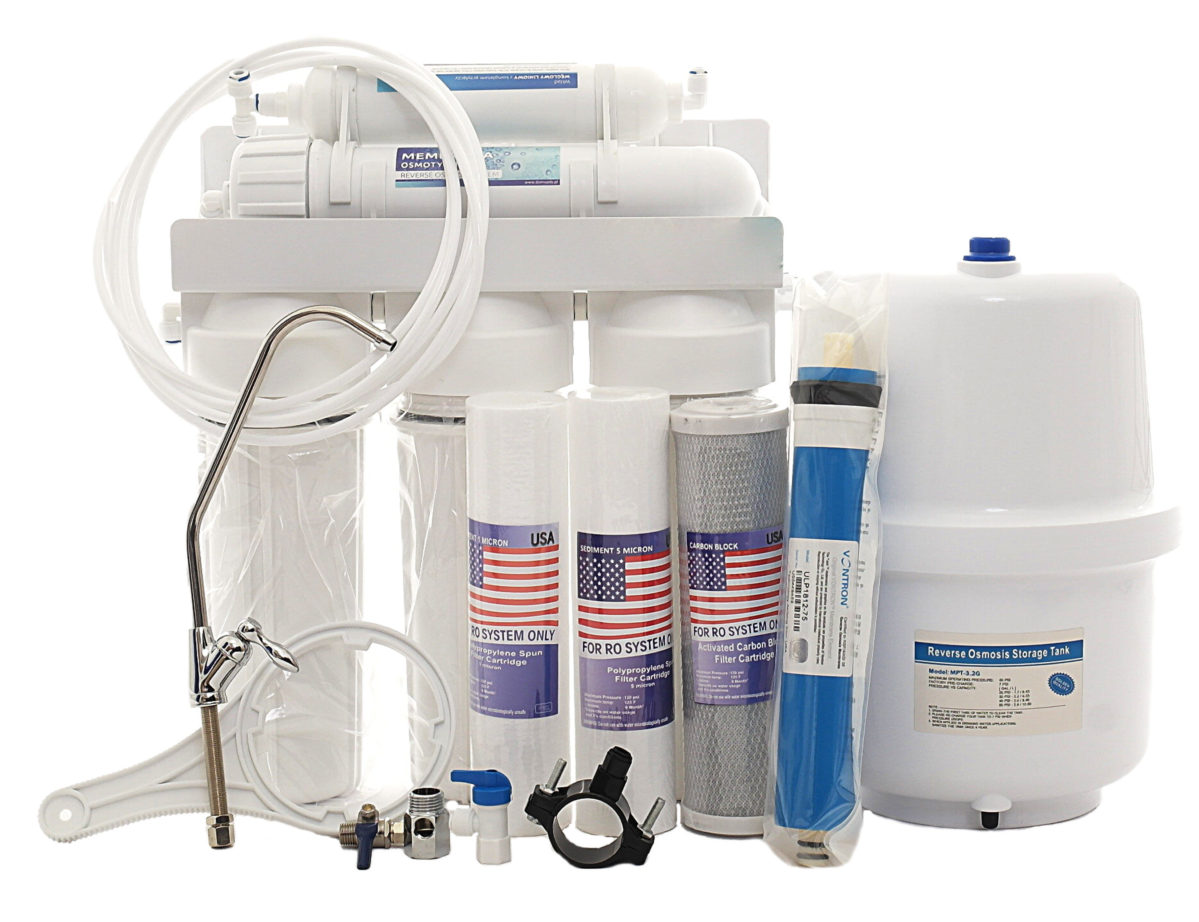 Lieferumfang | 1 x PP Pre-Filter Vorfilter, 1 x Granular-Kohlen-Filter, 1 x PP Filter Nachfilter, 1 x Membrane 50 GPD, 1 x Inline Aktivkohlen Nachfilter |