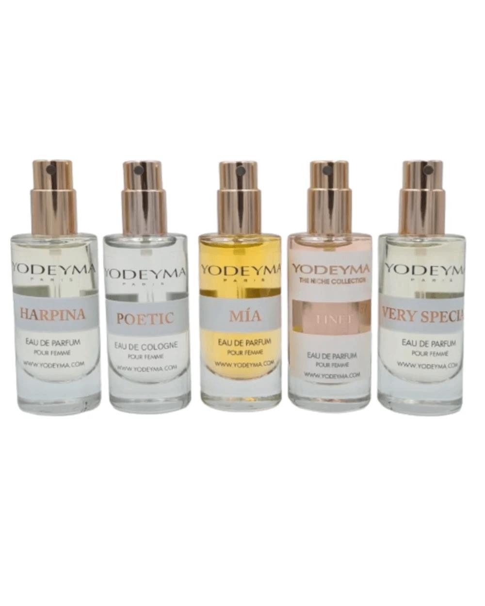 Entdecken Sie die faszinierende Welt der YODEYMA Parfums! Unsere erlesene Kollektion umfasst fünf exquisite Düfte: Poetic, Harpina, Mia, Very Special und Linet. Jedes Parfum ist eine meisterhafte Komposition, die Ihre Sinne verführt und Ihre Persönlichkeit unterstreicht.