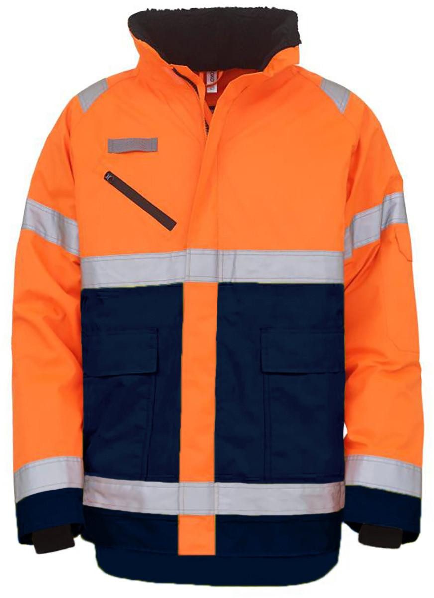 100 % wasserdichtes, atmungsaktives Ripstop-Polyester mit Karos. Herausnehmbare Unterschicht aus Samt. Retroreflektierende Streifen (5cm breit). Samtgefütterter Kragen mit integrierter, abnehmbarer Kapuze. 2-Wege-Reißverschluss unter Klettbandleiste. Außentaschen mit 2-Wege Zugriff & warmem Fleecefutter. Stiftfach & Handytasche am linken Ärmel. Brusttasche rechts mit wasserdichtem Zipper und Fach zum verdeckten Aufbewahren des Ausweises. Schnalle zur Befestigung eines kleinen Radios an der rechten Seite. Unteres Rückenteil verstellbar für optimale Abdeckung. Platz für Veredelung auf Brusttasche und Veredelungszugang am Saum (Innenseite). Entspricht EN ISO 20471:2013 Kategorie 3, EN342:2004 für Kälteschutz und UK GO/RT 3279 Issue 8:2013 für Bahn-Warnkleidung (Hi Vis Or.)