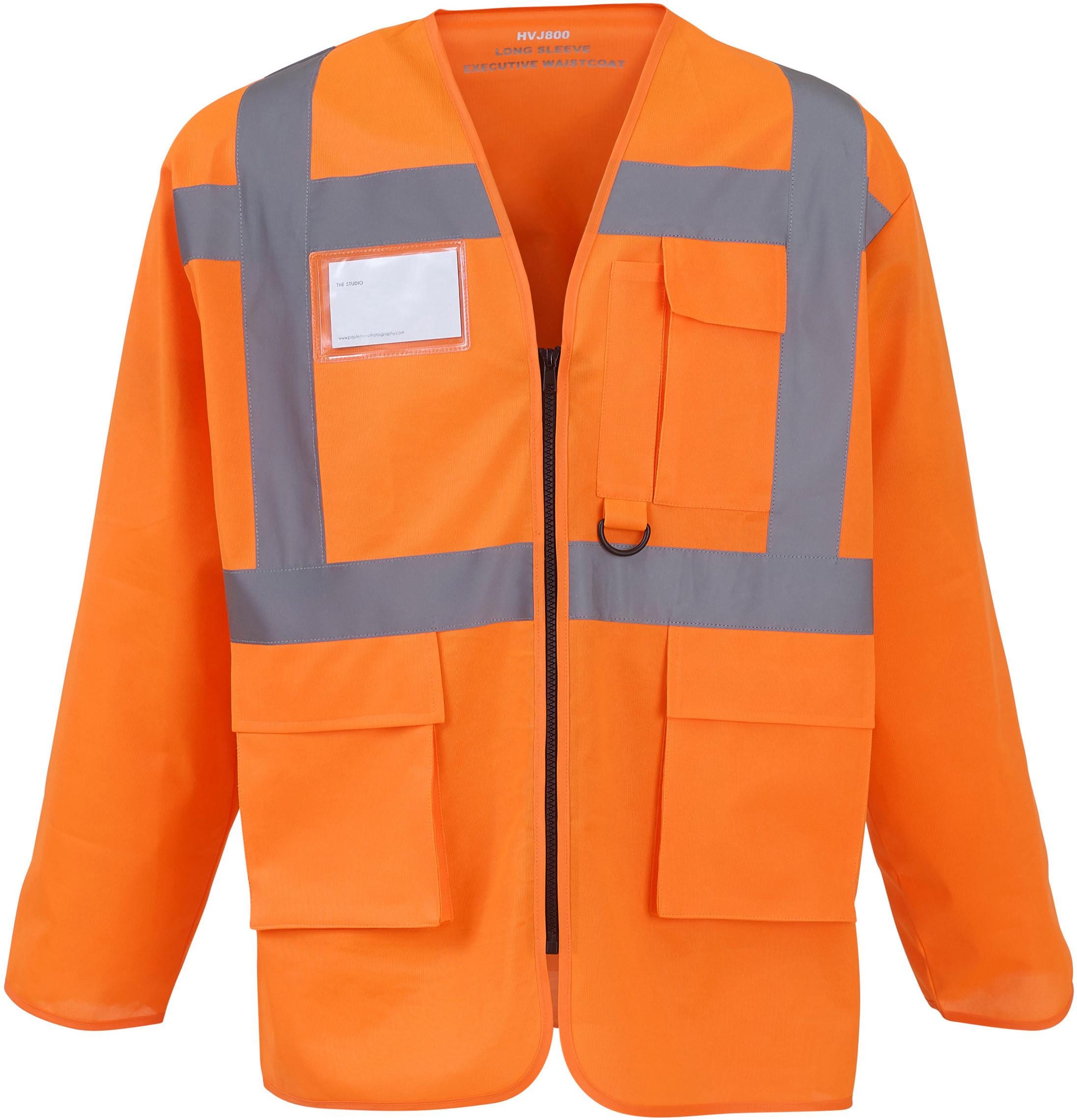 100 % Polyester. Reflektierende 3,5 cm breite Bänder an Rumpf, Armen und auf jeder Schulter. Tasche für Handy/Funkgerät links auf der Brust, durchgehender Reißverschluss auf der Vorderseite. Zwei Taschen unten mit Klappe, die sowohl von oben als auch von der Seite zugänglich sind. Stifttaschen und Schlüsselanhänger. Ausweistasche links auf der Brust. Große dekorierbare Fläche auf der Rückseite. Entspricht den Normen EN ISO 20471:2013 Kategorie 3.