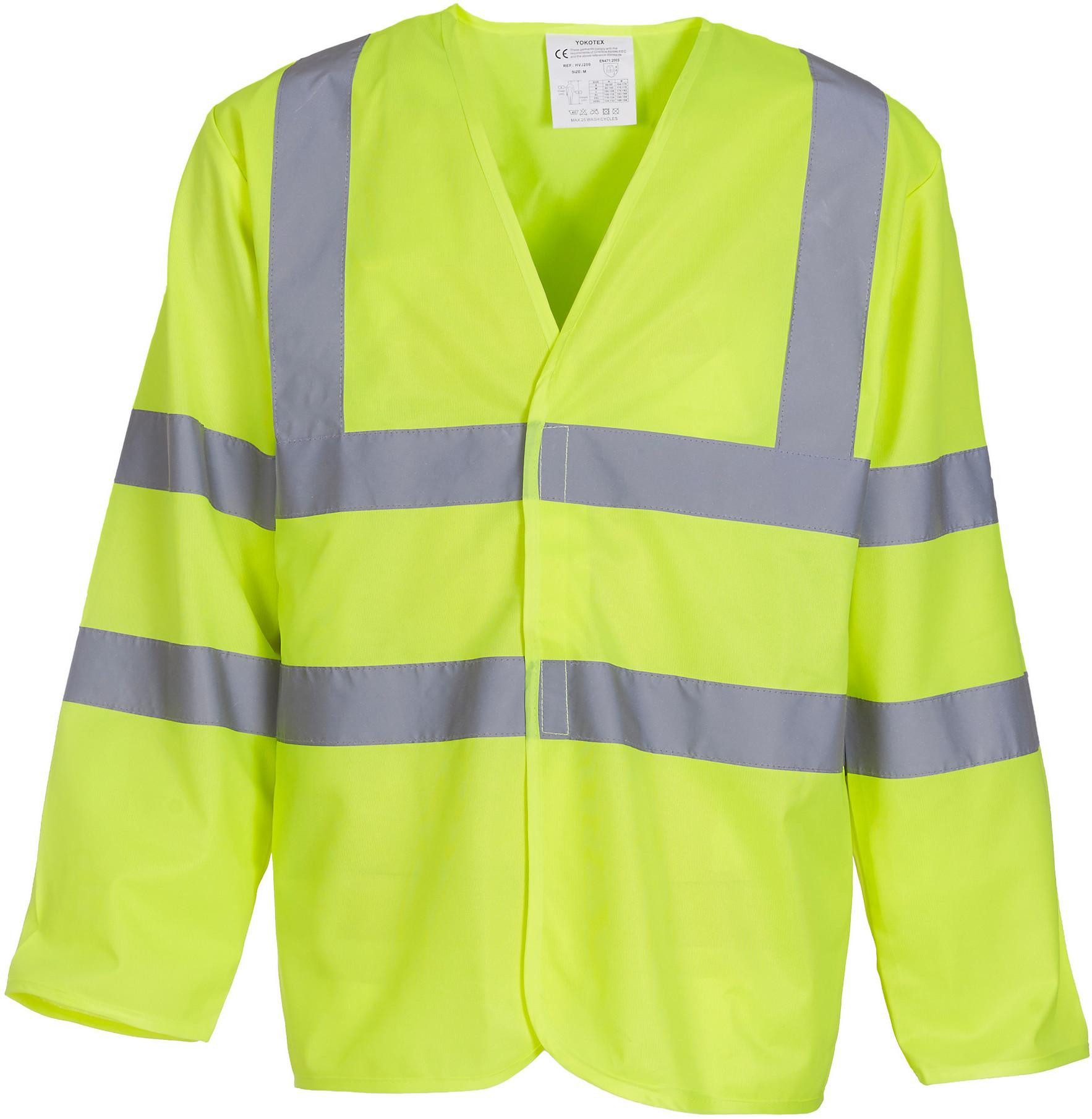 100 % Polyester. 120 gm². EN ISO20471:2013 Klasse 3. Hi-Vis Yellow/Orange, der Kontrast der beiden Farben garantiert eine optimale Sichtbarkeit. Reflektierendes, weißes, 5-cm-Band auf den Schultern und zwei an Rumpf und Ärmeln. Klettverschluss auf der Vorderseite. Funkgerättasche/Handytasche auf der rechten Seite. Weste, die sich perfekt für Transportunternehmen, Sicherheitsteams, Verkehrsbeamte usw. eignet.