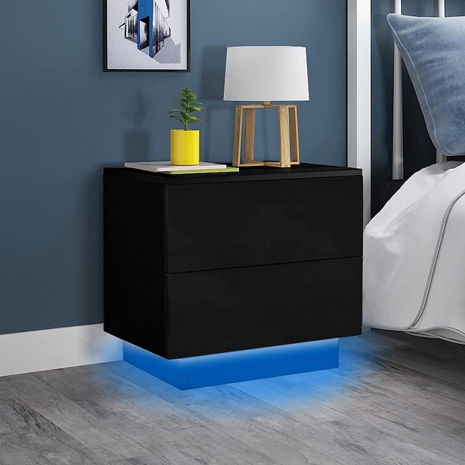 Der Nachttisch wird mit USB-Streifenlicht geliefert. Die LED-Leuchten können Lichteffekte und 16 Arten von RGB-Farben durch die Fernbedienung ändern. Es schafft nicht nur ein schönes und romantisches Ambiente, sondern ist auch die perfekte Dekoration für Ihr Zimmer.
