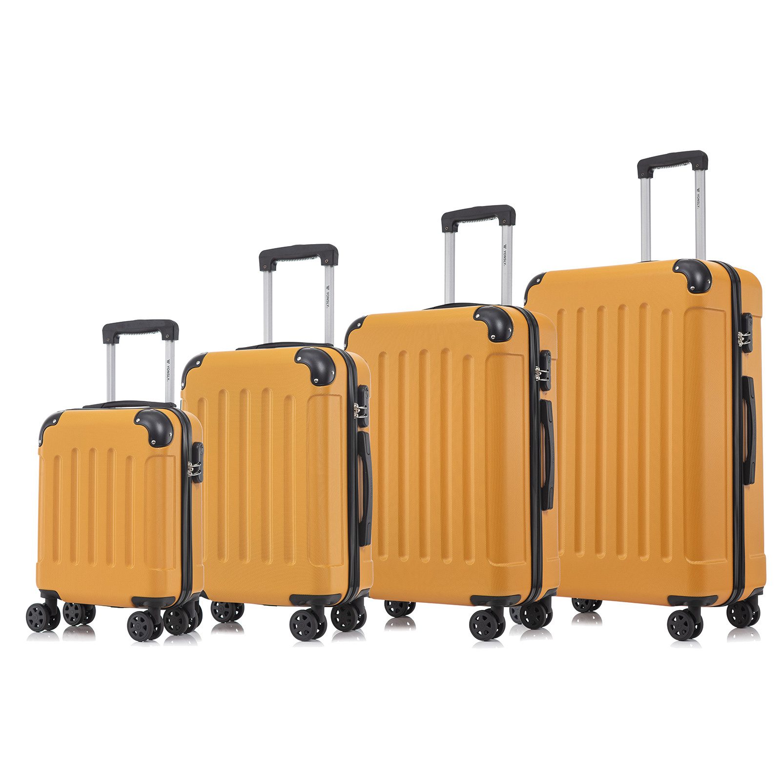 YONSLY Kofferset 4er Set – Ihr stylischer Begleiter für jede ReiseDas YONSLY Kofferset vereint durchdachtes Design, hochwertige Materialien und praktische Funktionalität. Die robuste ABS-Hartschale ist leicht und gleichzeitig stoßfest, sodass Ihre Habseligkeiten auf Langstreckenreisen optimal geschützt sind . Die vier leisen 360°-Rollen sorgen für ein gleichermaßen geräuscharmes wie müheloses Manövrieren – ob auf glatten Flughafenböden oder unebenen Stadtstraßen .Sicherheit und Komfort im FokusDas integrierte Sicherheitsschloss gewährleistet zusätzliche Sicherheit für Ihre Wertsachen, während der weiche Gummigriff ein angenehmes Tragen auch über längere Zeit ermöglicht . Das Set umfasst vier Größen (S, M, L, XL), die sich flexibel für Kurztrips als Handgepäck oder für längere Urlaube kombinieren lassen. Die Innenaufteilung unterstützt eine organisierte Packweise .Ihre Vorteile auf einen Blick: