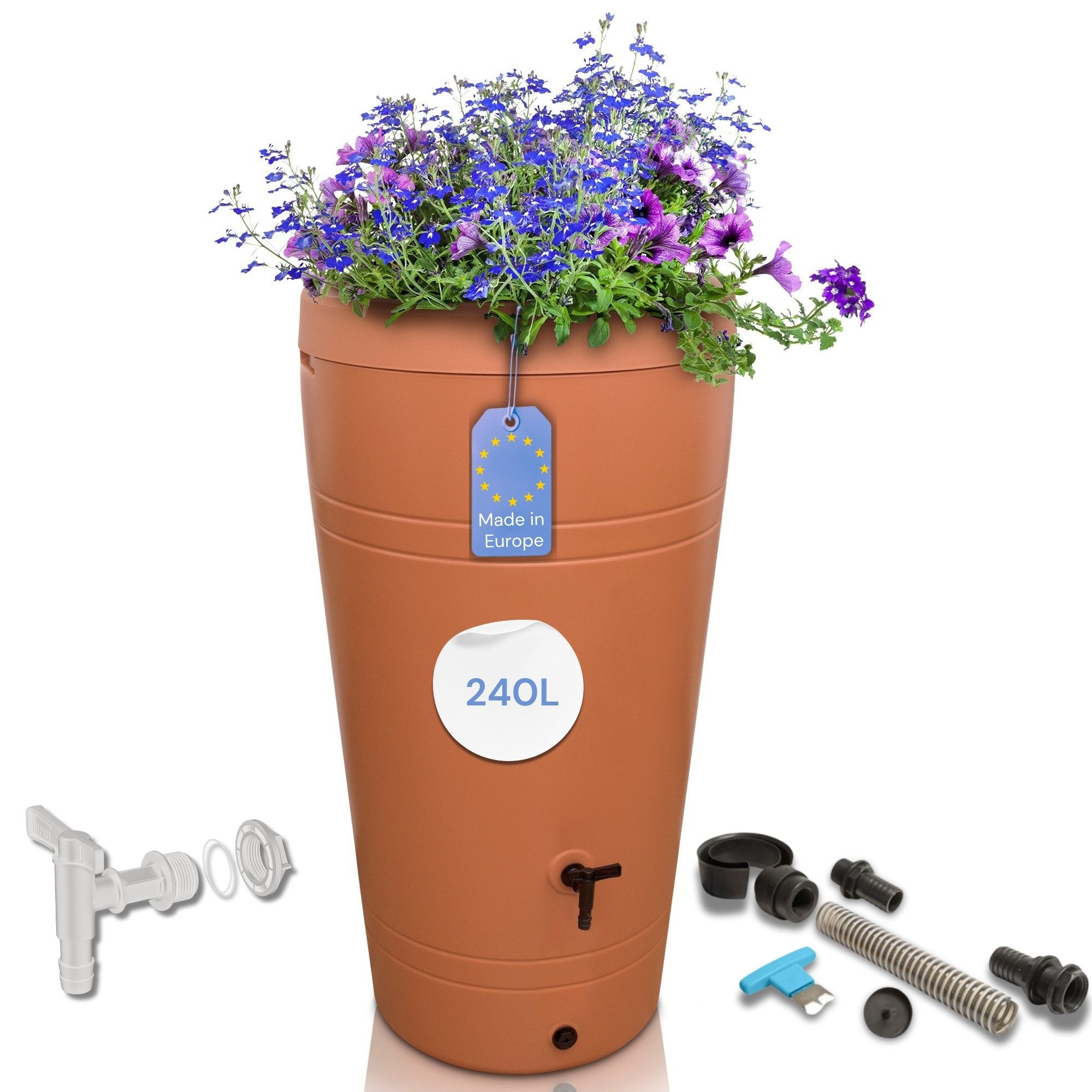 BEPFLANZBAR - Regenwasserbehälter ist bepflanzbar. Die zusätzlich mitgelieferte Pflanzschale lässt die Blumen direkt an der Wasserquelle wachsen. Das wirkt sich nicht nur praktisch aus, sondern sieht obendrein auch noch fantastisch aus.