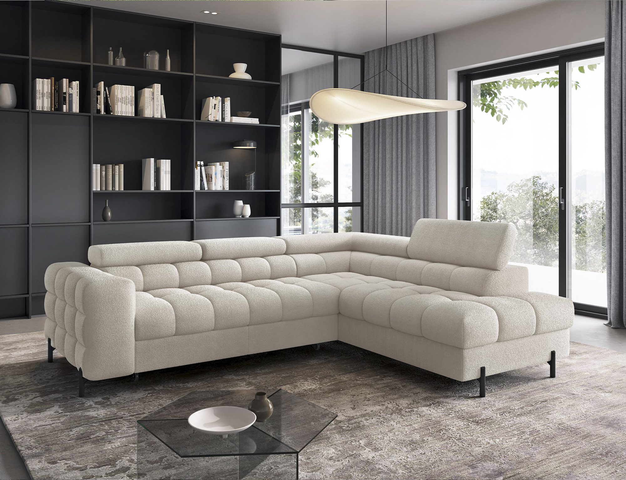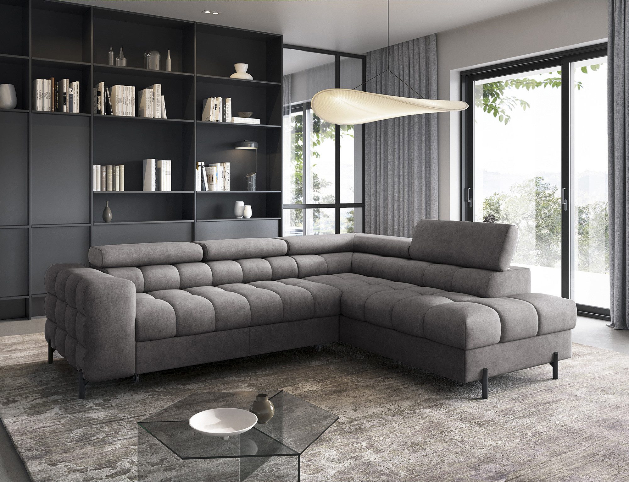 Ästhetik: Die Vielfalt der Stoffe ermöglicht es Ihnen, das Ecksofa an jede Einrichtung anzupassen. Komfort und Bequemlichkeit: Die beweglichen Kopfstützen verändern nicht nur das Aussehen des Möbelstücks, sondern sorgen auch für maximale Entspannung. Funktionalität: Eine Schlaffunktion ermöglicht es Ihnen, den Raum effizient zu nutzen, und unerwartete Gäste werden uns nicht überraschen.