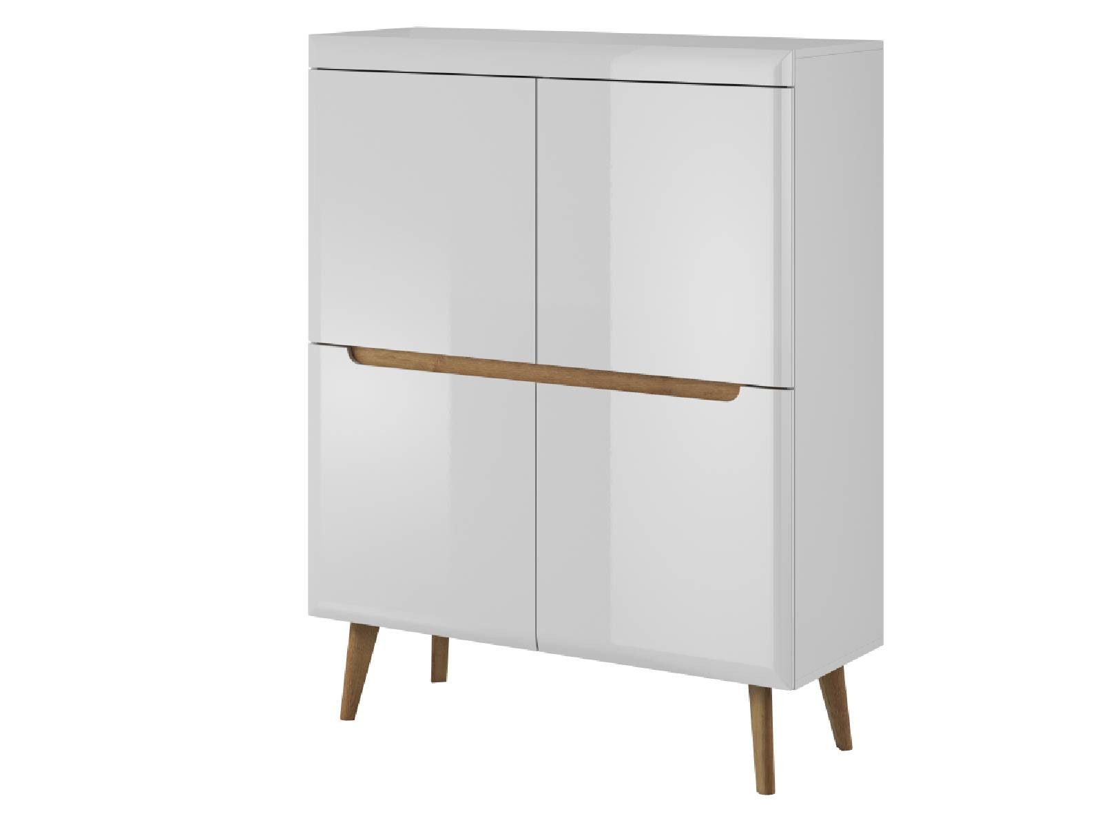 Die Nordi Kollektion verbindet moderne Formgebung mit einem Hauch von Eleganz. Eine außergewöhnliche Kombination aus glänzenden Fronten, natürlicher Holzoptik und hohen Beinen, deren Form die Linienführung der Möbel aufgreift, verleiht dem Interieur einen frischen und stilvollen Charakter.