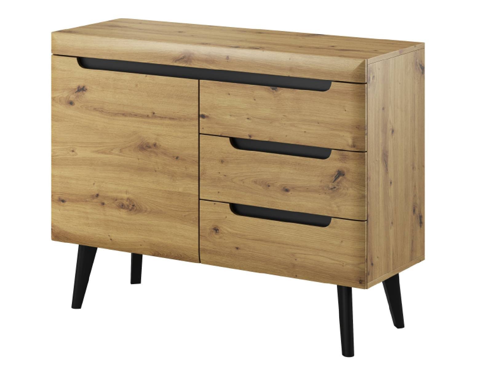 Die Nordi Kollektion verbindet moderne Formgebung mit einem Hauch von Eleganz. Eine außergewöhnliche Kombination aus glänzenden Fronten, natürlicher Holzoptik und hohen Beinen, deren Form die Linienführung der Möbel aufgreift, verleiht dem Interieur einen frischen und stilvollen Charakter.