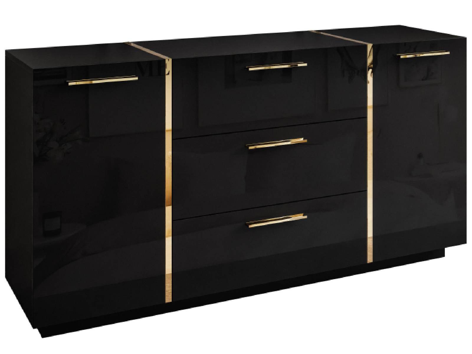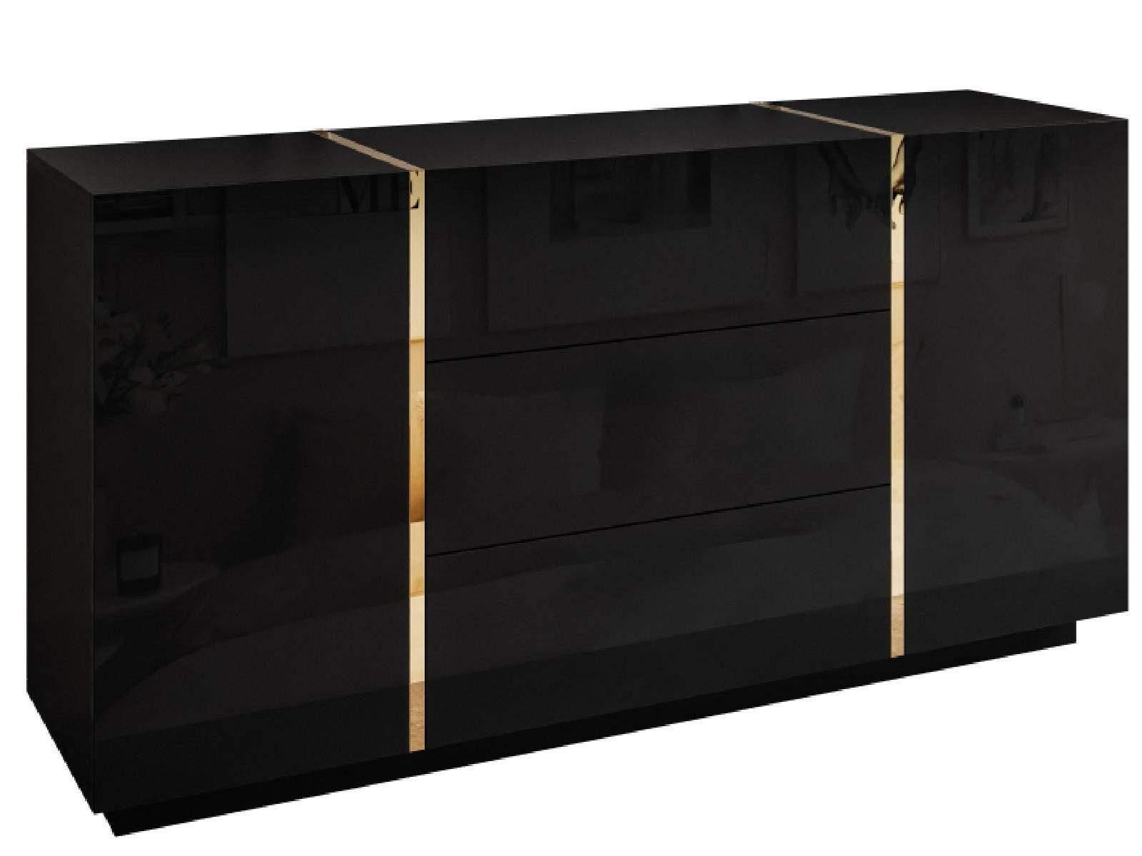 Der elegante Farbton, die glänzenden Fronten und die feinen goldfarbenen Akzente verleihen dem Möbelstück einen luxuriösen Charakter. Die Kommode fügt sich ideal in moderne, glamouröse oder minimalistische Räume ein und sorgt für stilvolle Harmonie.