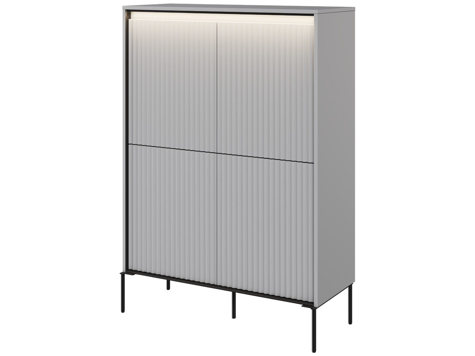 Die geriffelten MDF-Fronten verleihen der Kommode eine besondere Tiefe und Eleganz. Unterstützt wird das Design durch eine integrierte LED-Leiste (A++), die die Rillenstruktur subtil in Szene setzt. Farblich stehen Ihnen drei stilvolle Вариантыn zur Verfügung: Sandbeige / Schwarz, Grau / Schwarz und Artisan Eiche / Schwarz.