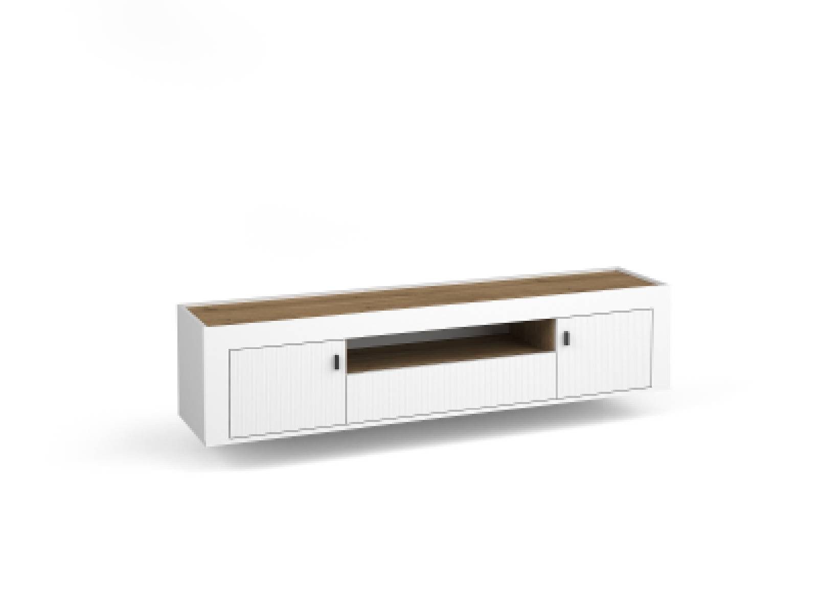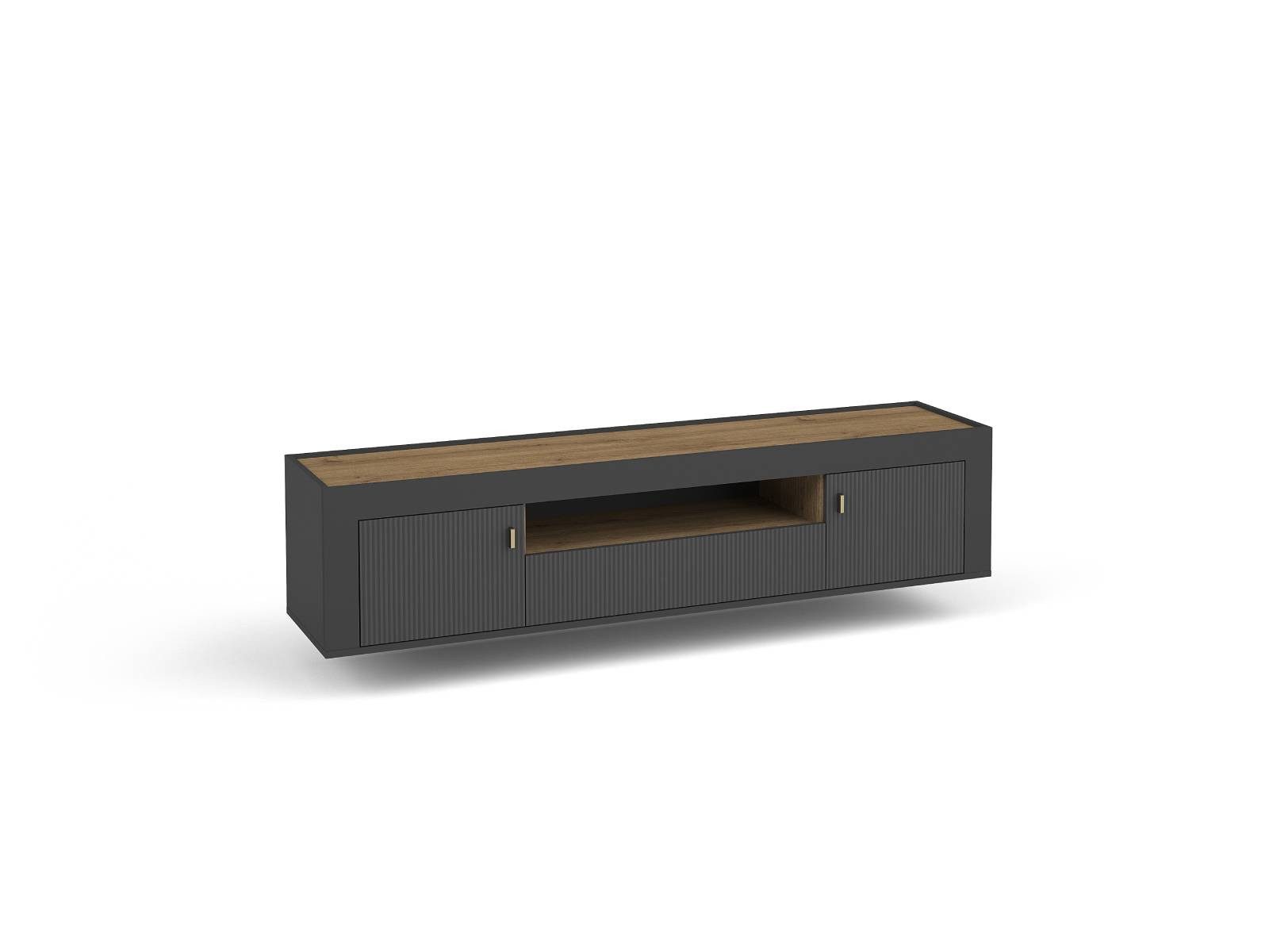 Das TV-Lowboard ist in zwei Вариантыn erhältlich – als stehendes Modell mit eleganten Füßen oder als hängende Version ohne Füße. So können Sie das Möbelstück perfekt an den Charakter Ihres Wohnzimmers und die Raumgestaltung anpassen. Beide Optionen verbinden modernes Design mit Funktionalität und sorgen für praktische Aufbewahrung sowie einen stilvollen Look im Wohnzimmer.