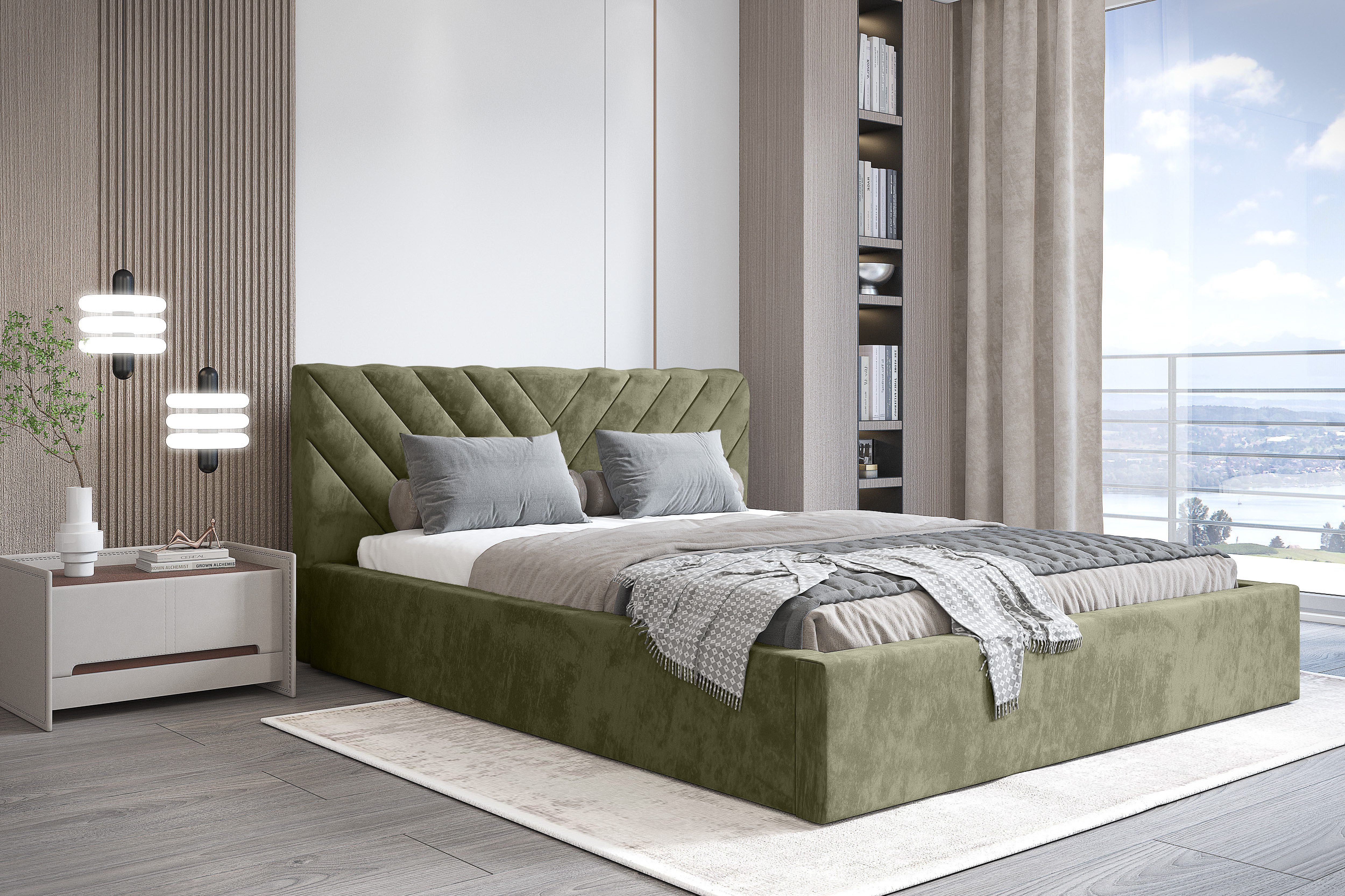 Das Bett Vegas III ist ein modernes Möbelstück, das Eleganz mit Funktionalität verbindet. Das markante, gesteppte Kopfteil verleiht dem Schlafzimmer einen einzigartigen Stil und bietet gleichzeitig eine komfortable Unterstützung beim Entspannen. Der gepolsterte Bettrahmen, der in einer Vielzahl von Farben und Stoffen erhältlich ist, passt sich jeder Inneneinrichtung an. Die solide Konstruktion des Bettes garantiert Langlebigkeit, während der optionale Bettkasten praktische Aufbewahrungsmöglichkeiten bietet, um den Platz optimal zu nutzen. Vegas III ist die ideale Wahl für alle, die Wert auf hohe Qualität, Komfort und Ästhetik in einem legen.