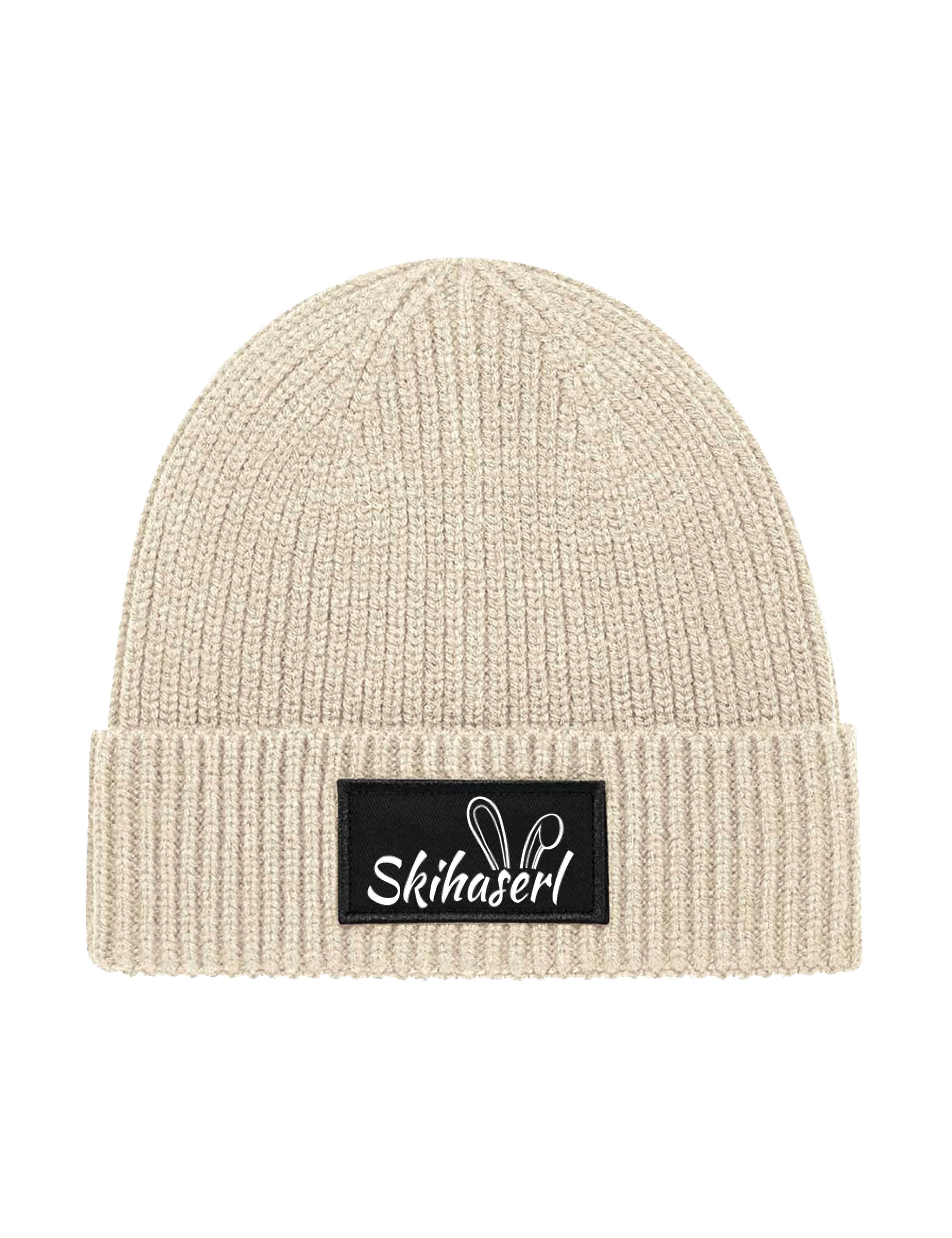 Charmanter Winterspruch: Beanie mit dem Aufnäher „Skihaserl“ – perfekt für stilbewusste Ski-Fahrerinnen und Schnee-Fans.