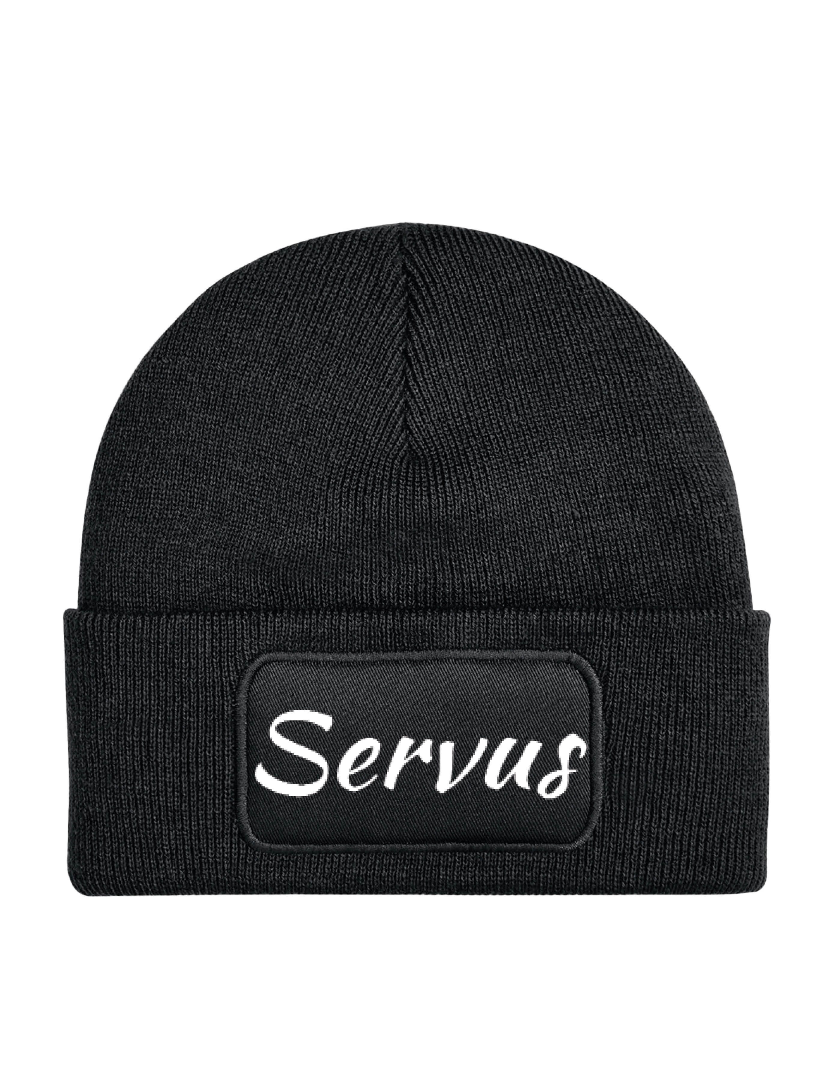 Sympathischer Gruß zum Tragen: Beanie mit schlichtem „Servus“-Aufdruck – für alle, die Heimatgefühl und Freundlichkeit ausstrahlen möchten.
