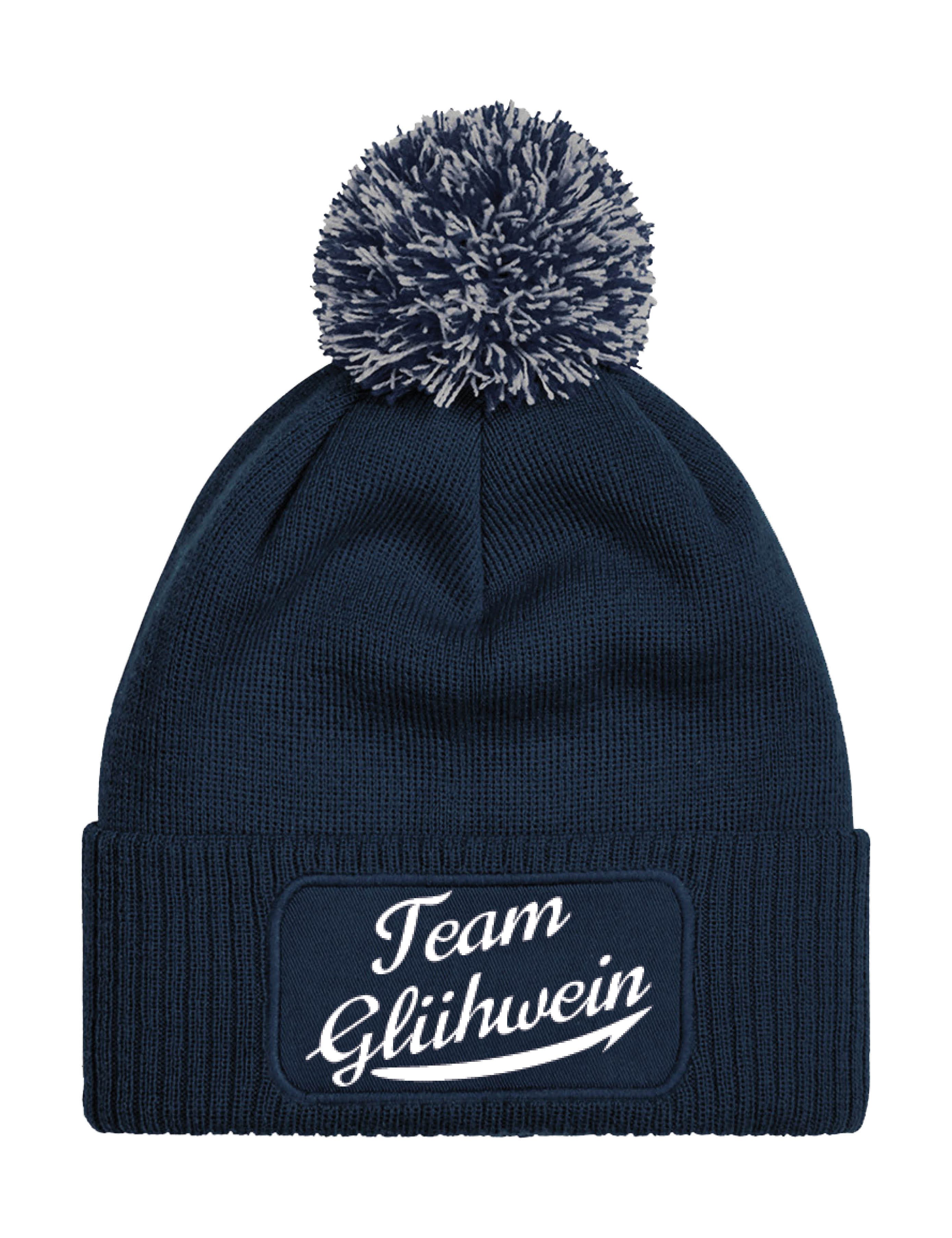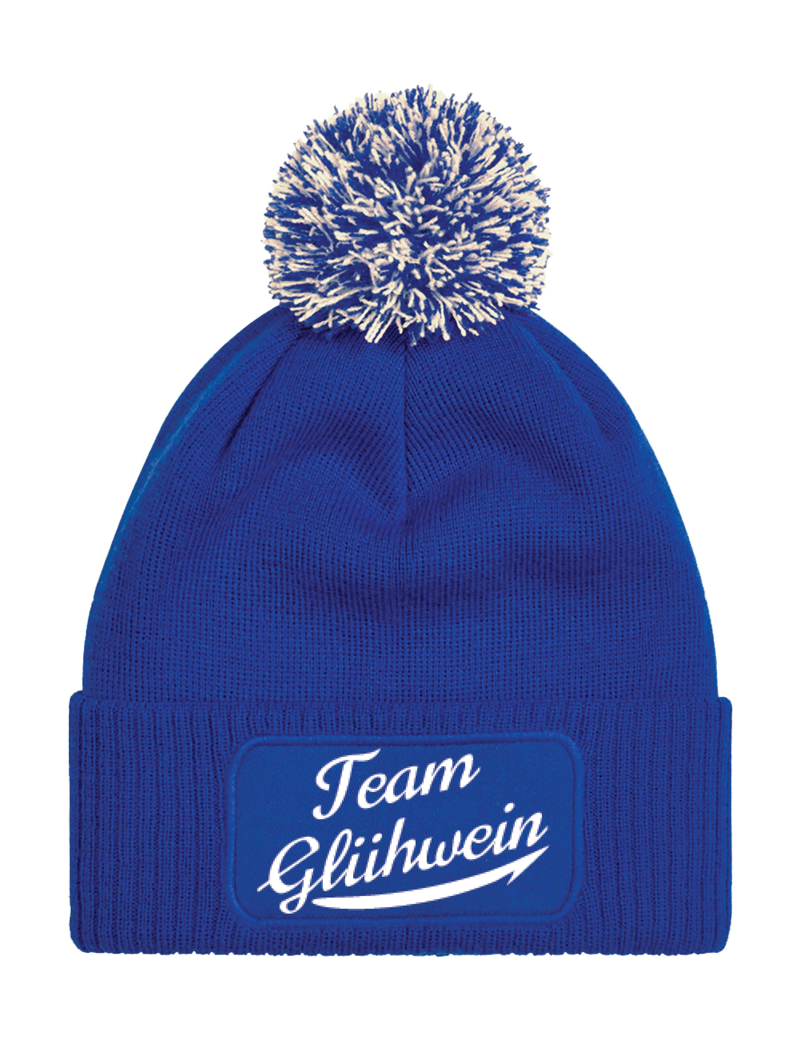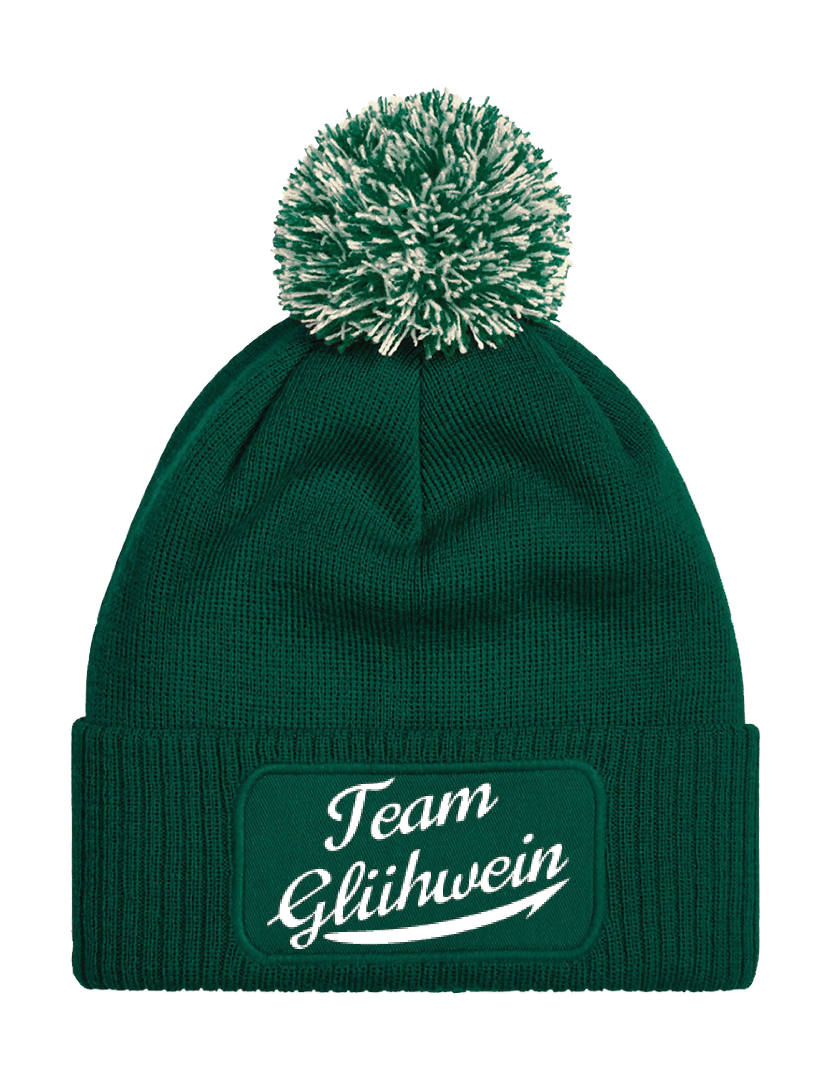 Zweifarbige Bommelmütze mit „Team Glühwein“-Logo – perfekt für Winterfans, Weihnachtsmarkt-Gänger & Genießer