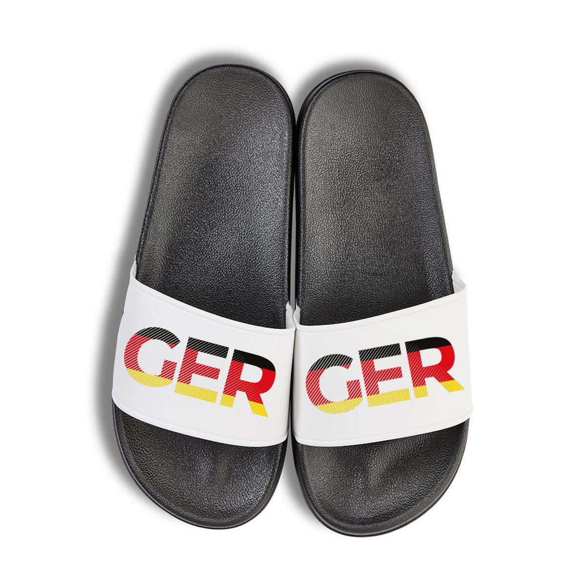 Zeigen Sie Ihre Unterstützung für die deutsche Fußballmannschaft mit unseren Unisex "Deutschland" Badelatschen. Perfekt für Fans, die ihre Leidenschaft und Treue zur deutschen Nationalmannschaft während der WM, EM oder anderen sportlichen Veranstaltungen ausdrücken möchten. Der Aufdruck "GER", eine Abkürzung für Deutschland, kombiniert mit den Farben der deutschen Flagge, macht diese Badelatschen zu einem auffälligen Accessoire. Die ergonomische Passform und die rutschfeste Sohle bieten Komfort und Sicherheit, ideal für Strandbesuche, den Gang ins Schwimmbad oder einfach für entspannte Tage im Urlaub. Verfügbar in den Größen 36 bis 47, sind diese Badelatschen ein ideales Geschenk für jeden Fan der deutschen Fußballmannschaft und eine stilvolle Wahl für sportliche Anlässe.