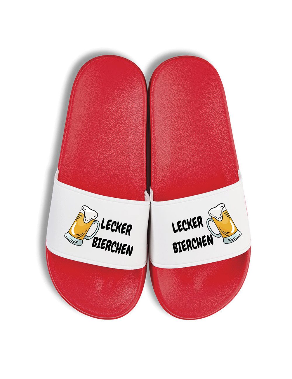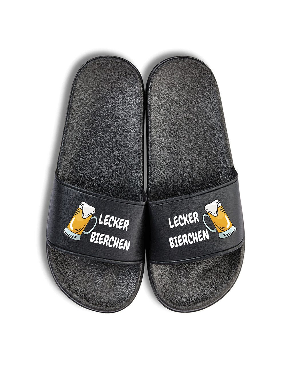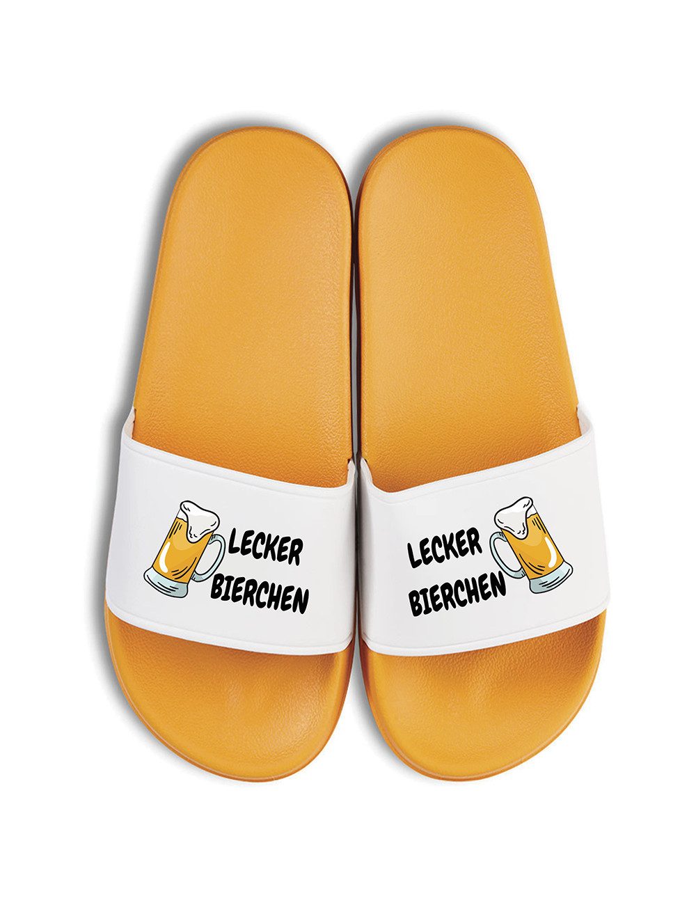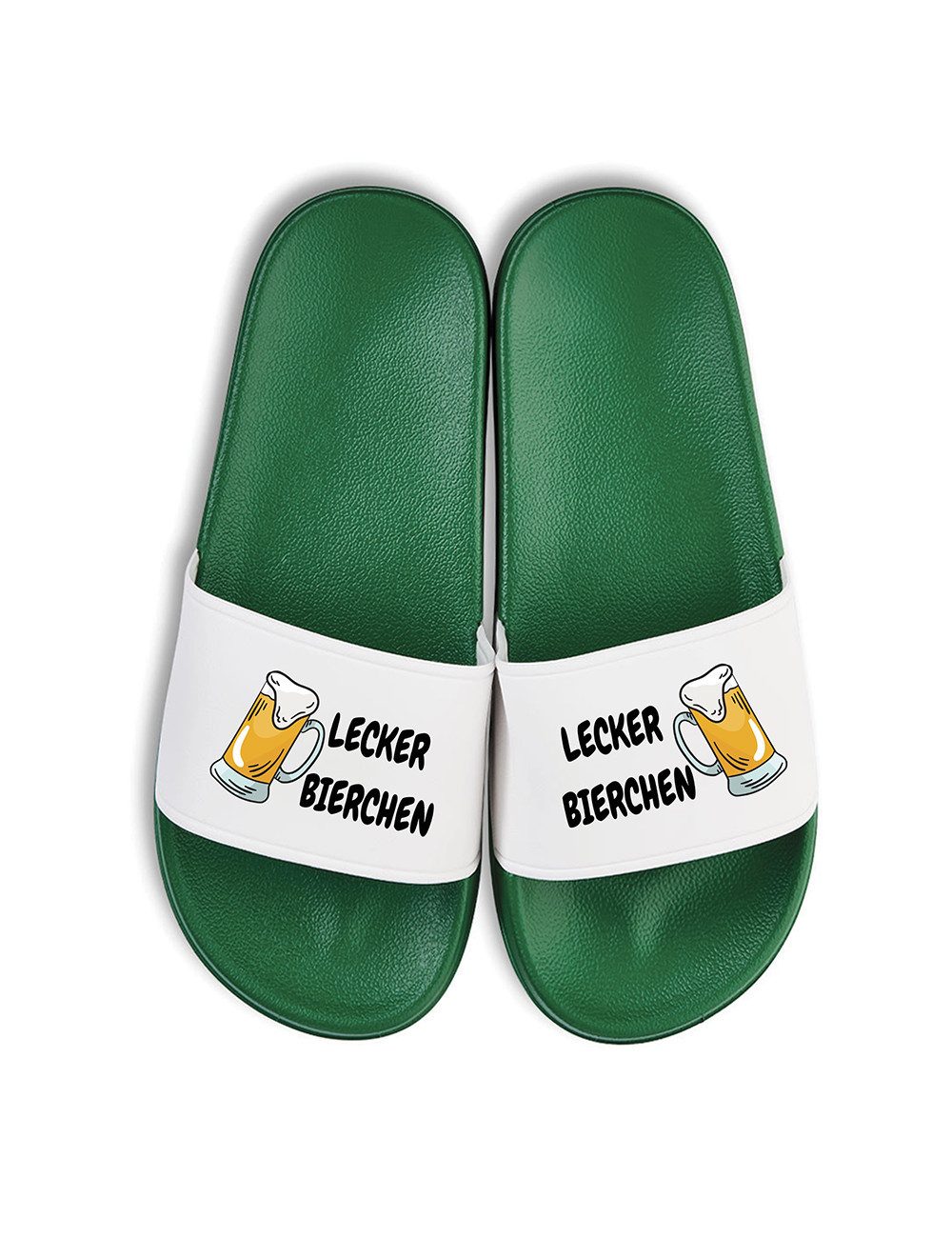 Humorvolles Design: Mit dem witzigen Aufdruck „Lecker Bierchen“ sind diese Latschen ein echter Hingucker – perfekt für Bierfans, Festivalgänger und Genießer.