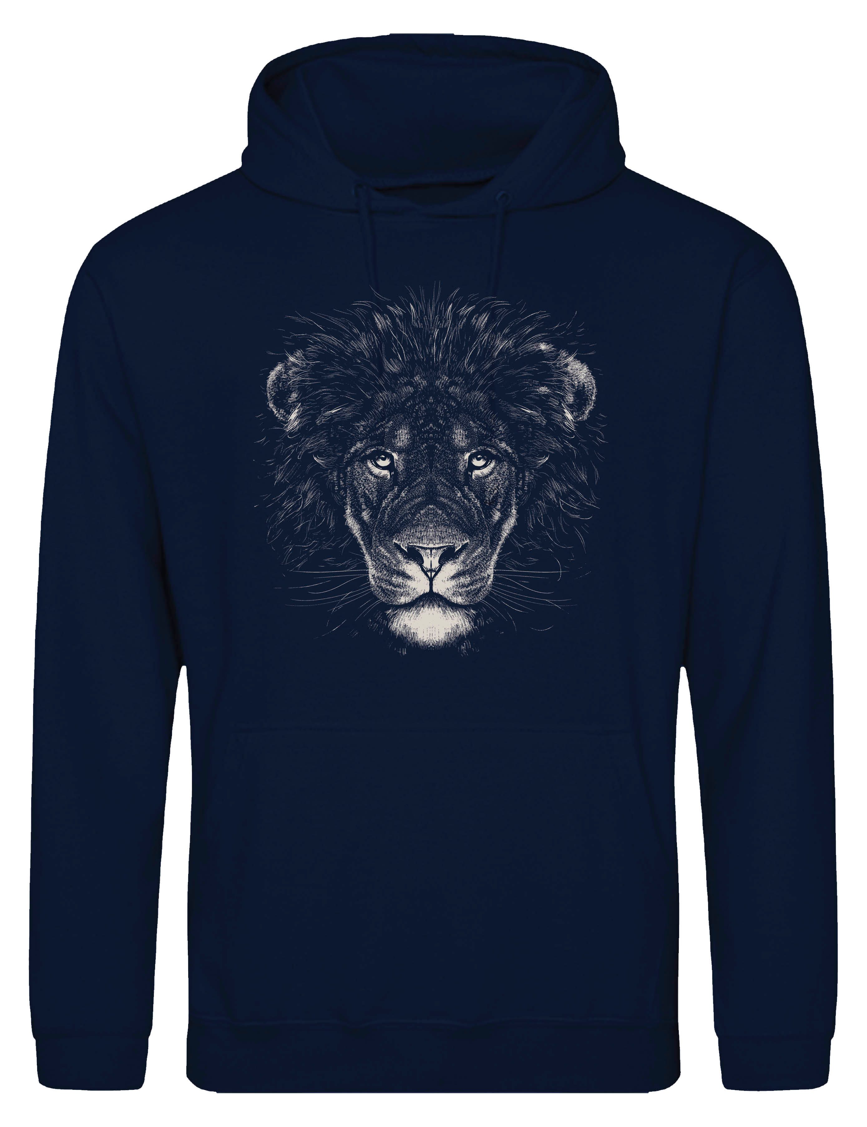 Der Löwen Herren Hoodie vereint stilvollen Jungle-Charme mit höchstem Tragekomfort. Der markante Löwen-Aufdruck auf dem T-Shirt symbolisiert Stärke und Wildheit und ist ein echter Hingucker für Tierliebhaber und Fashion-Fans. Gefertigt aus einer hochwertigen Mischung aus 50% Baumwolle und 50% Polyester, bietet der Kapuzenpullover ein weiches Innenfutter und einen komfortablen Regular-Fit, der sich ideal für jeden Tag eignet. Die gefütterte Kapuze mit Kordelzügen, eine praktische Bauchtasche und gerippte Bündchen an Ärmeln und Saum machen den Hoodie sowohl funktional als auch stylish. Ob als Geschenk zu Weihnachten, zum Vatertag oder Geburtstag – dieser Kapuzenpullover begeistert durch seine coole Optik und seinen Tragekomfort.