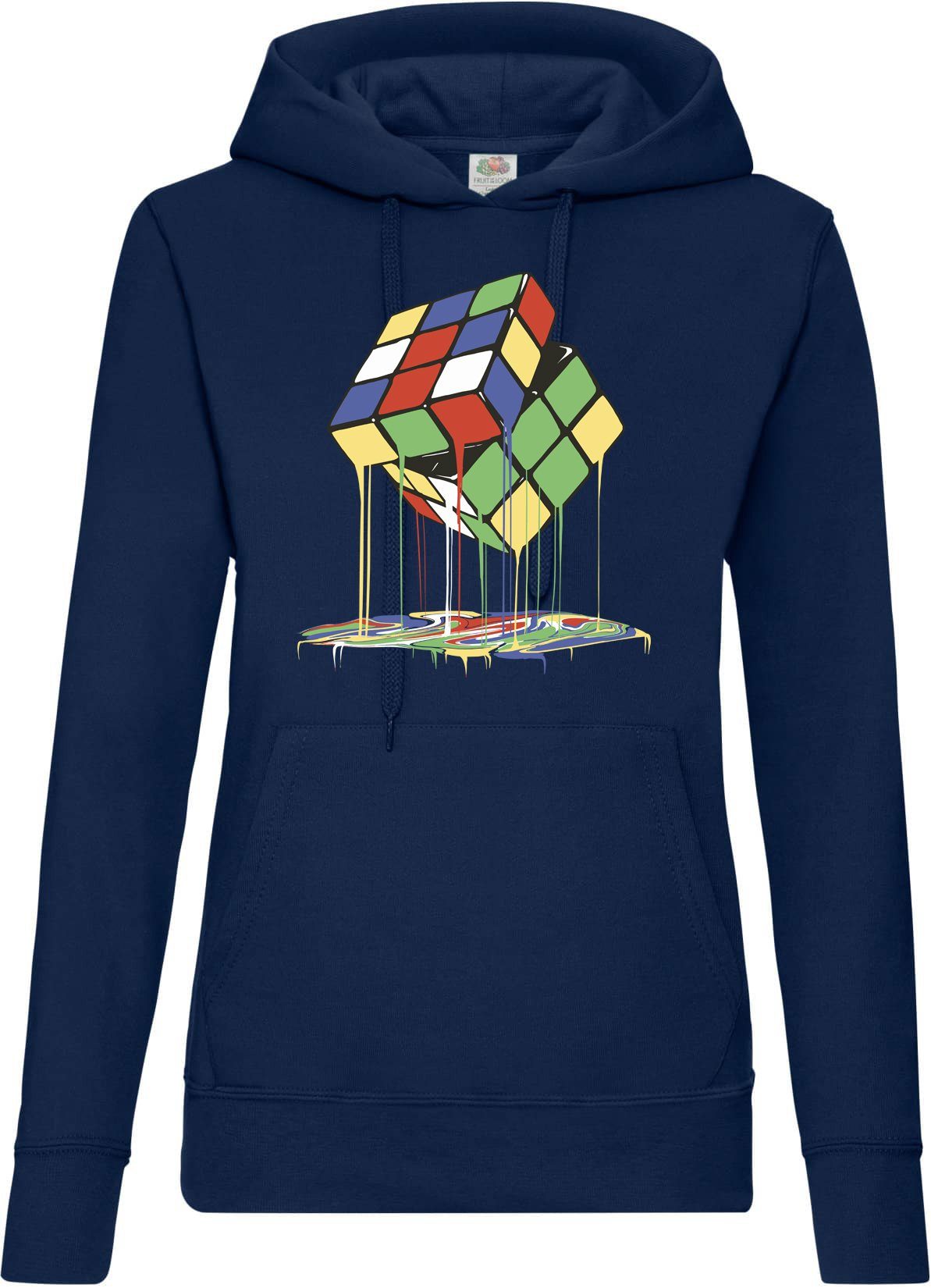 Hochwertiger Hoodie mit trendigem Schmelzendem Zauberwürfel Motiv im Dali Look für Nerds, Geeks und Kunst Fans