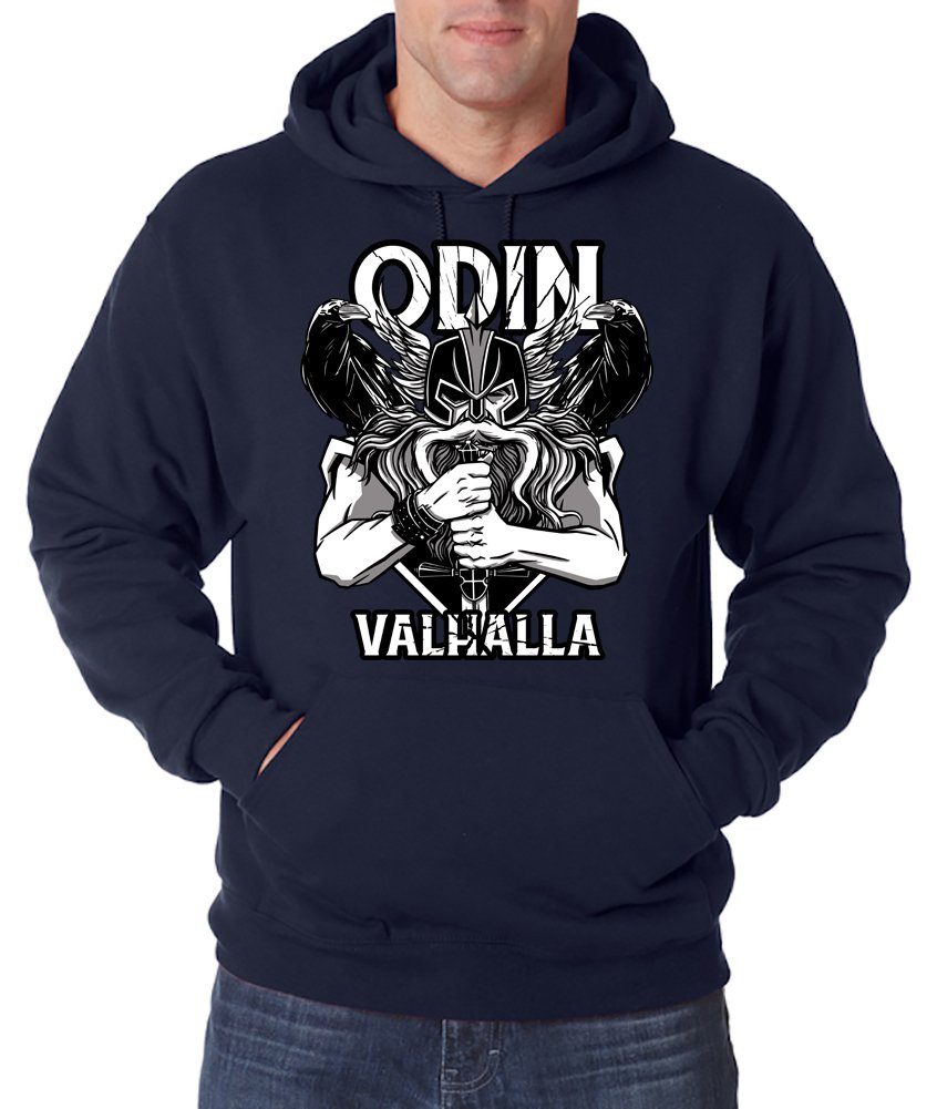 odie: Der modisch geschnittene Herren Kapuzenpullover ist hochwertig verarbeitet und hat einen hohen Tragekomfort. Der Pullover hat eine gefütterte Kapuze gefüttert, weiches Innenfutter, Kordelzüge, Bauchtasche und gerippte Bündchen an Ärmel und Saum. Die Pullover mit lustigen Spruch und Logo Print sind ideal als Geschenk für Freunde, Freund, Familie, Vater, Papa, Onkel, Bruder, Kinder und Sohn zum Geburtstag, Weihnachten und Ostern! Der Logo Aufdruck erfolgt in unserer Manufaktur in Deutschland. Der Aufdruck hat eine hohe Waschbeständigkeit und langlebige Farbbrillanz. Hochwertiger Hoodie mit Odin Valhalla Spruch aus Film, Kino, Thor, America, Runen, Diablo, Germanen und Norddeutsch, Götter und Wikinger für Film und Mythologie Fans im Vintage-Look.