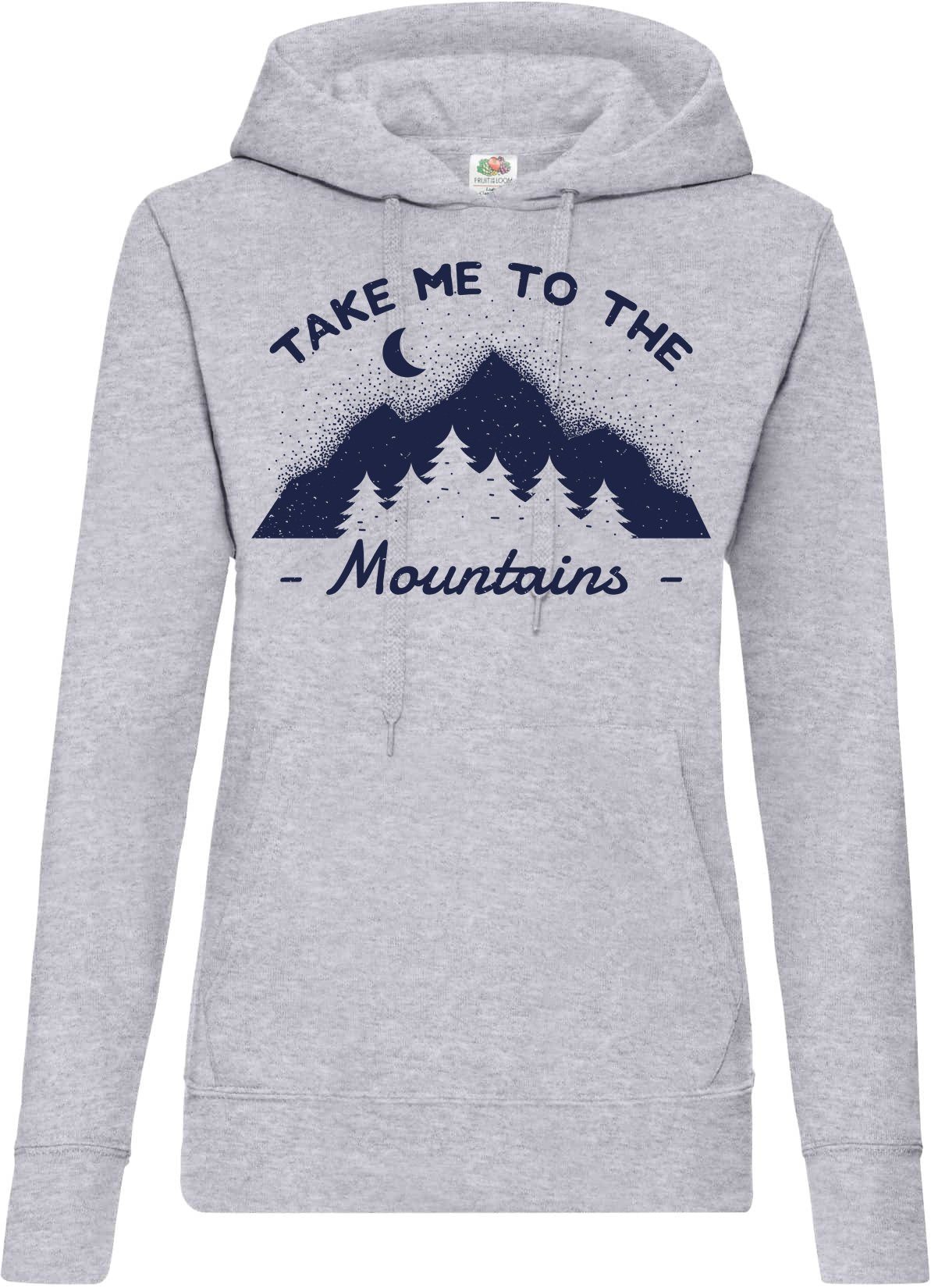 Hochwertiger Hoodie mit Take me to the Moutains Spruch für Wanderer, Abenteurer und Outdoor Typen. Stillen Sie die Wanderlust