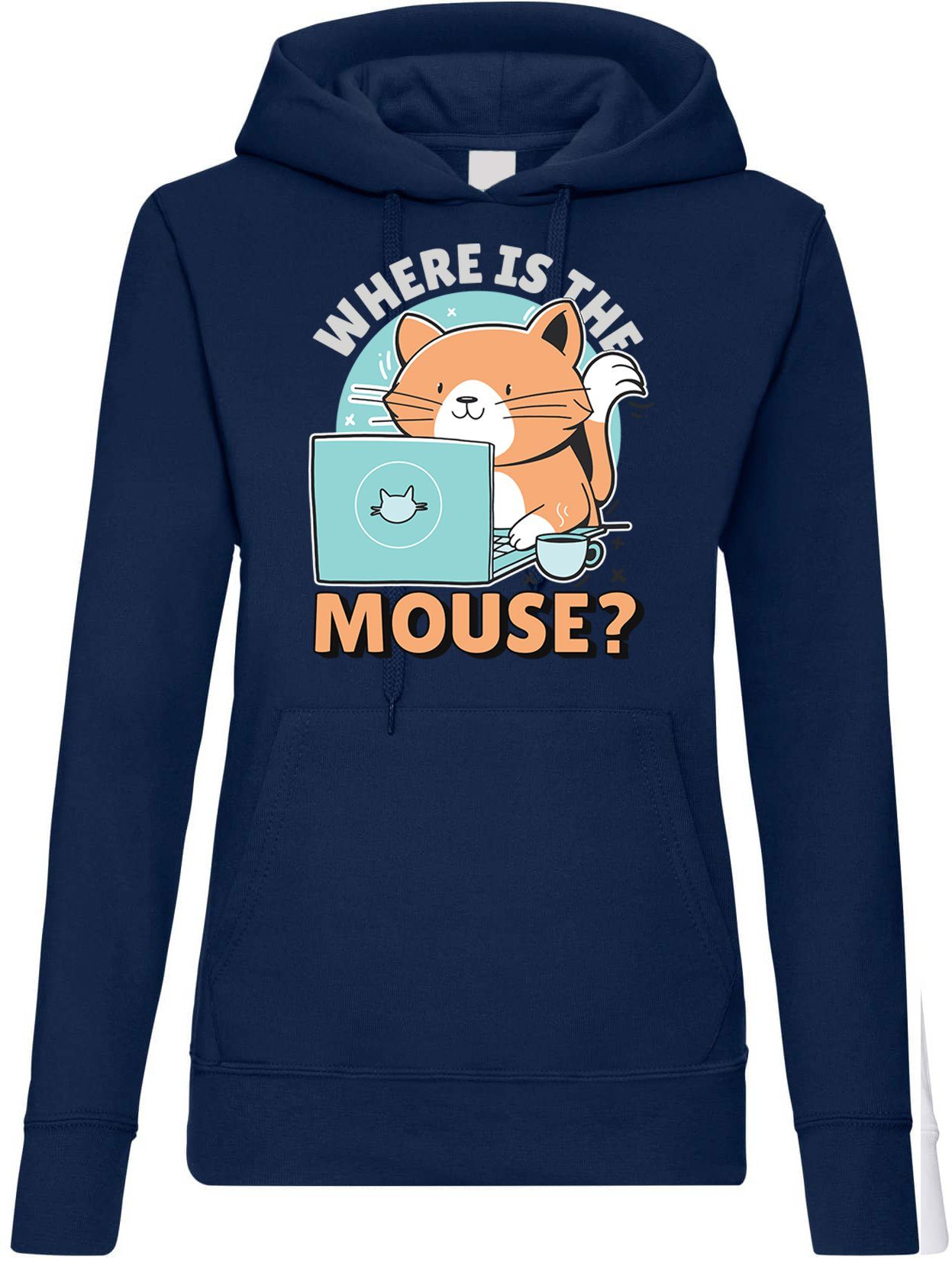 Hochwertiger Hoodie mit lustigem Katzen Motiv und Where is the Mouse? Spruch für jeden Katzenliebhaber, Katzenmama, Katzenbesitzer und Cat Lover