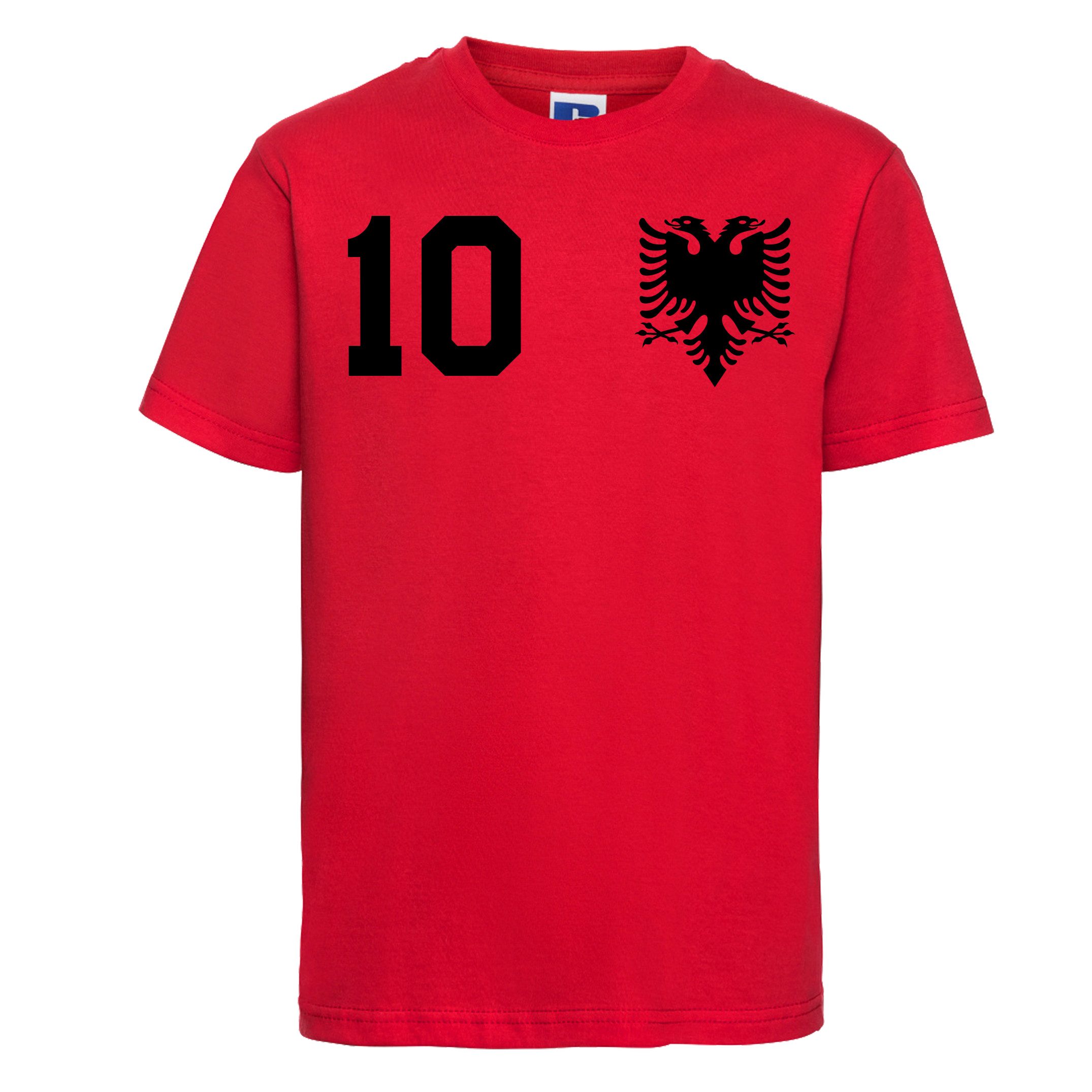 Tolles Motiv zur Fußball WM oder Fußball EM als 12. Mann: Das modisch geschnittene Kinder Fan T-Shirt für Jungen und Mädchen im sportlichen Albanien Fußball Trikot Look ist hochwertig verarbeitet und hat einen hohen Tragekomfort. Ob für zu Hause, zum Sport oder für heiße Sommertage, dieses Fun T-Shirt ist jederzeit der ideale Wegbegleiter als Fanartikel. Setzen Sie ein Statement mit diesem lustigen T-Shirt und zeigen Sie Flagge zur Fußball Weltmeisterschaft oder Europameisterschaft als 12. Mann. Das mit Wappen und Flagge verzierte Print Albanien T-Shirt eignet sich für Sport Veranstaltungen wie Fußball WM 2022, Basketball EM und Olympia. Das Fan T-Shirt eignet sich perfekt als Geschenk für Freunde, Familie, Kinder, Sohn, Tochter, Neffe und Nichte zum Geburtstag, Nikolaus, Weihnachten und Ostern als persönlicher Geschenkartikel.