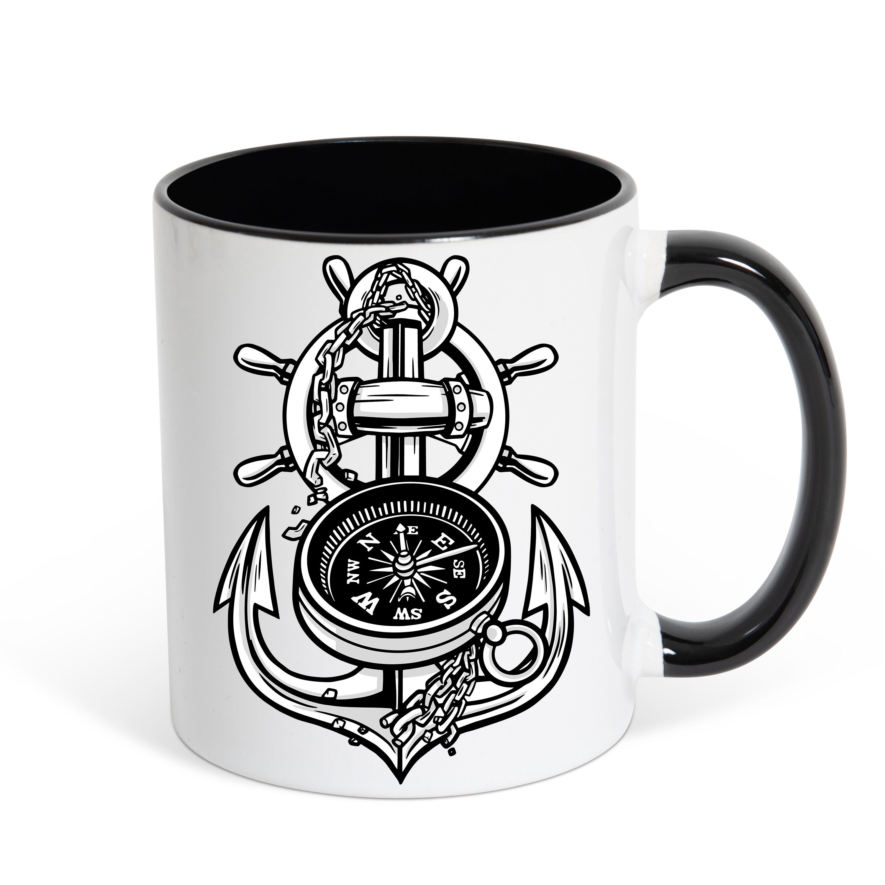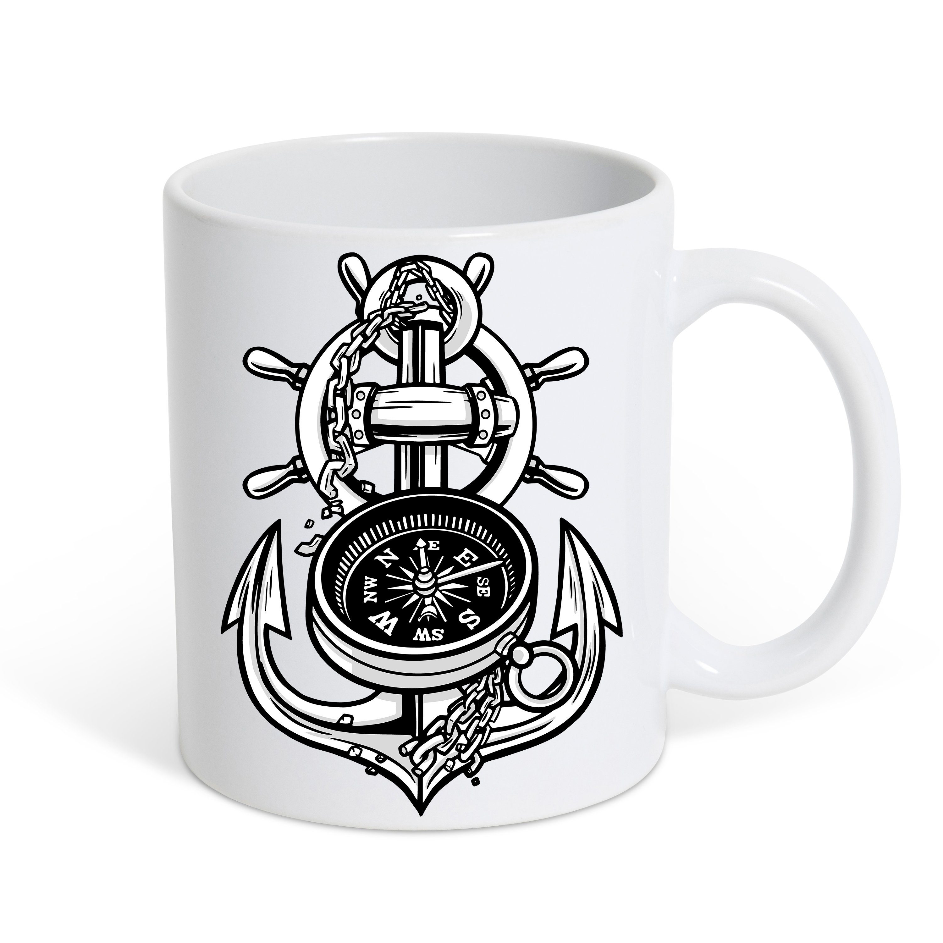 Hochwertig bedruckte Tasse mit einem Anker und einem Kompass Print