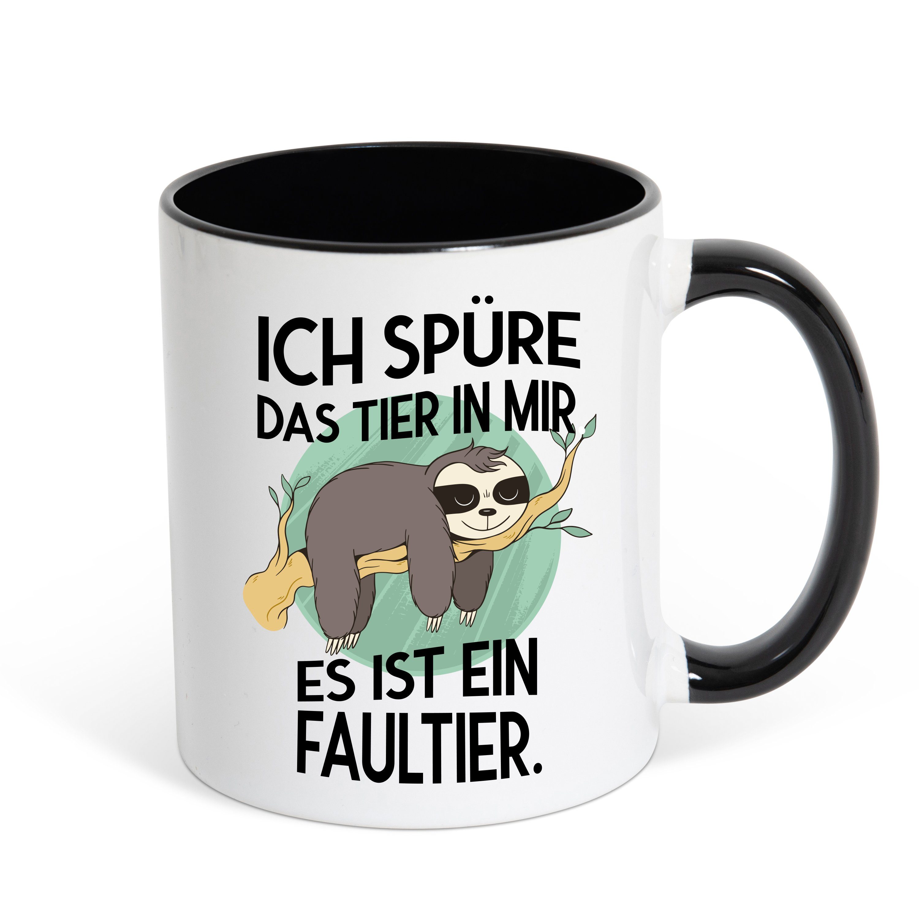 Hochwertig bedruckte Tasse mit lustigem Humorvollem Spruch Print mit Faultier Motiv. Perfekt für jeden Morgenmuffel, Faulpelz und Müßiggeher
