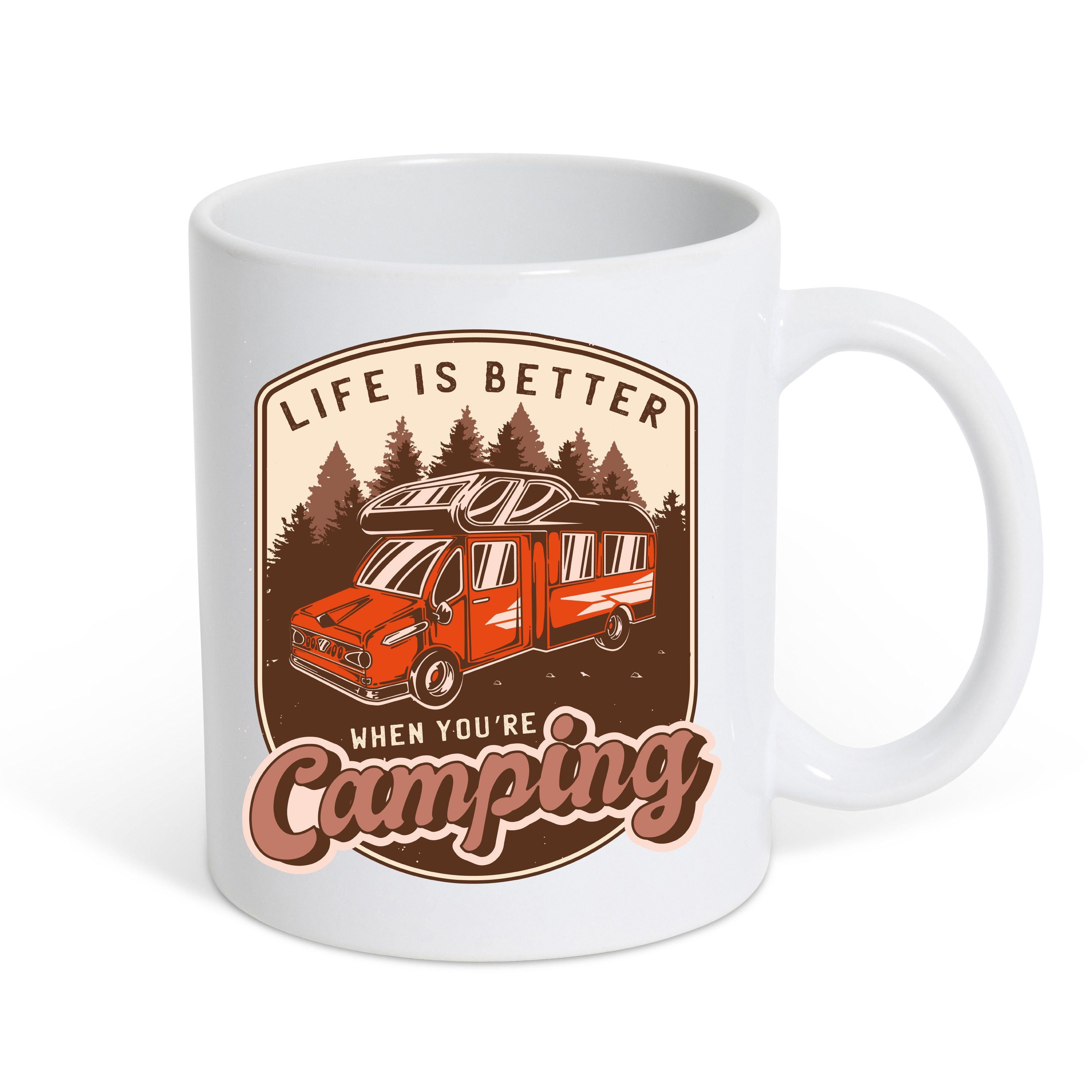 Hochwertige Tasse mit lustigem Spruch Print als Geschenk für Camper, Camping, Van, Wanderer, Wandern, Zelten, Road-Trip und Abenteuer.