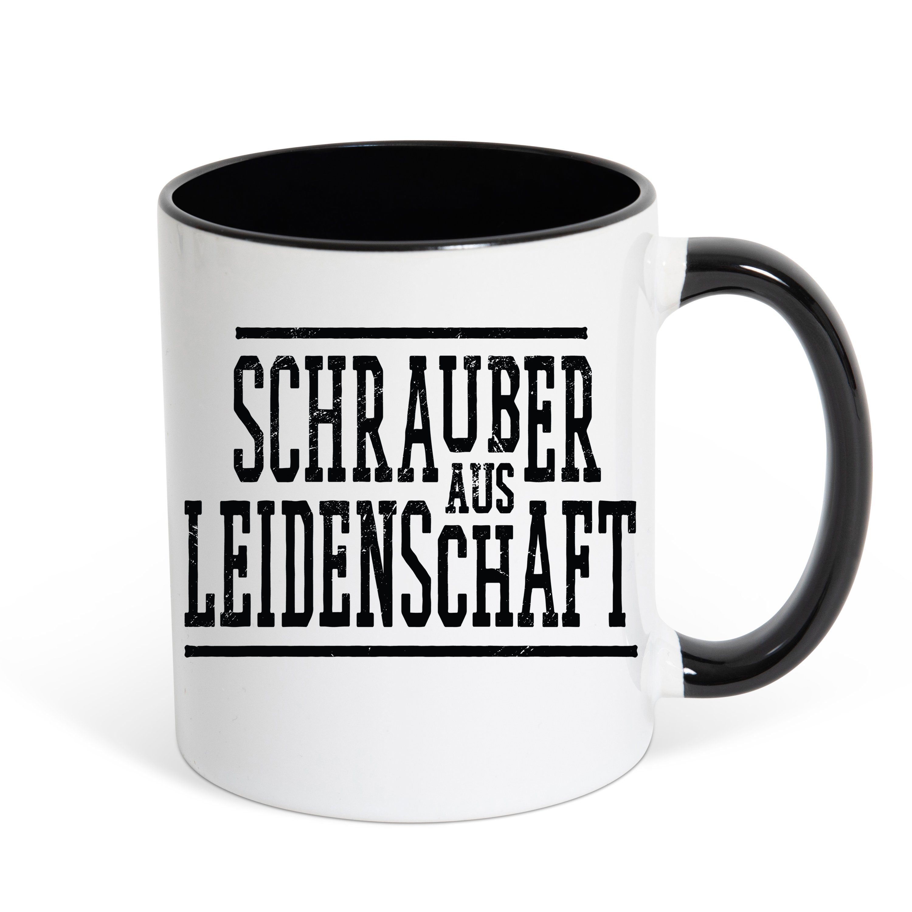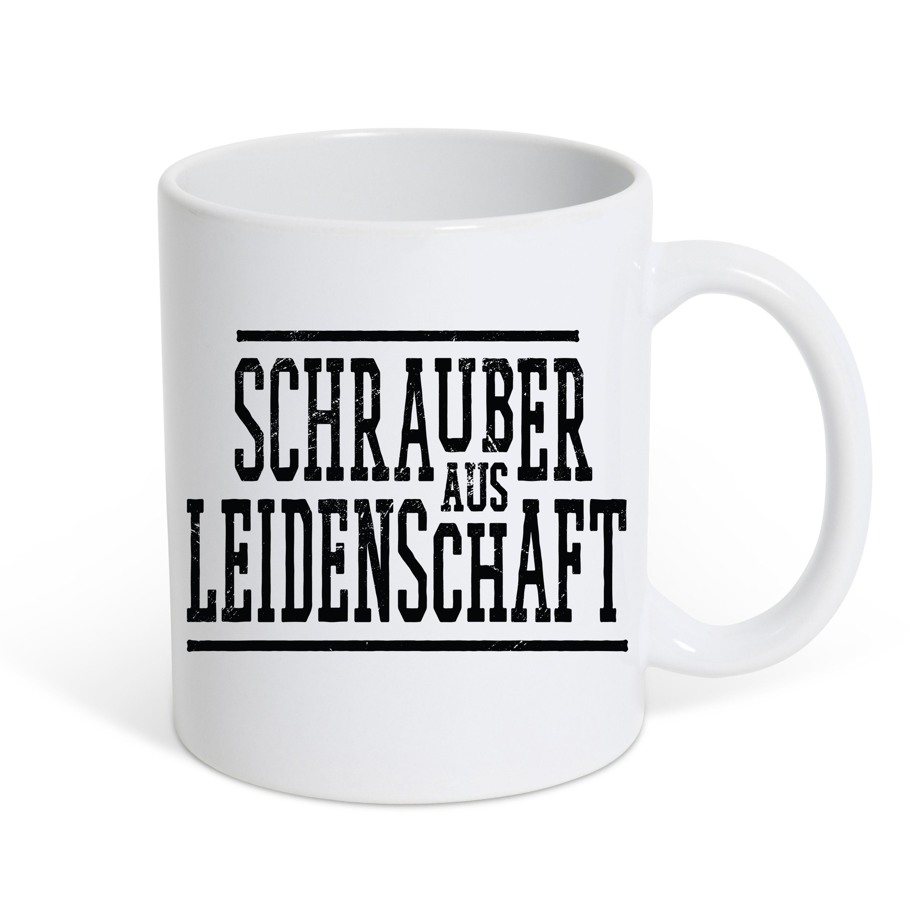 Hochwertig bedruckte Tasse mit SCHARUBER AUS LEIDENSCHAFT Aufdruck für Handwerker, Handarbeiter und Monteure.