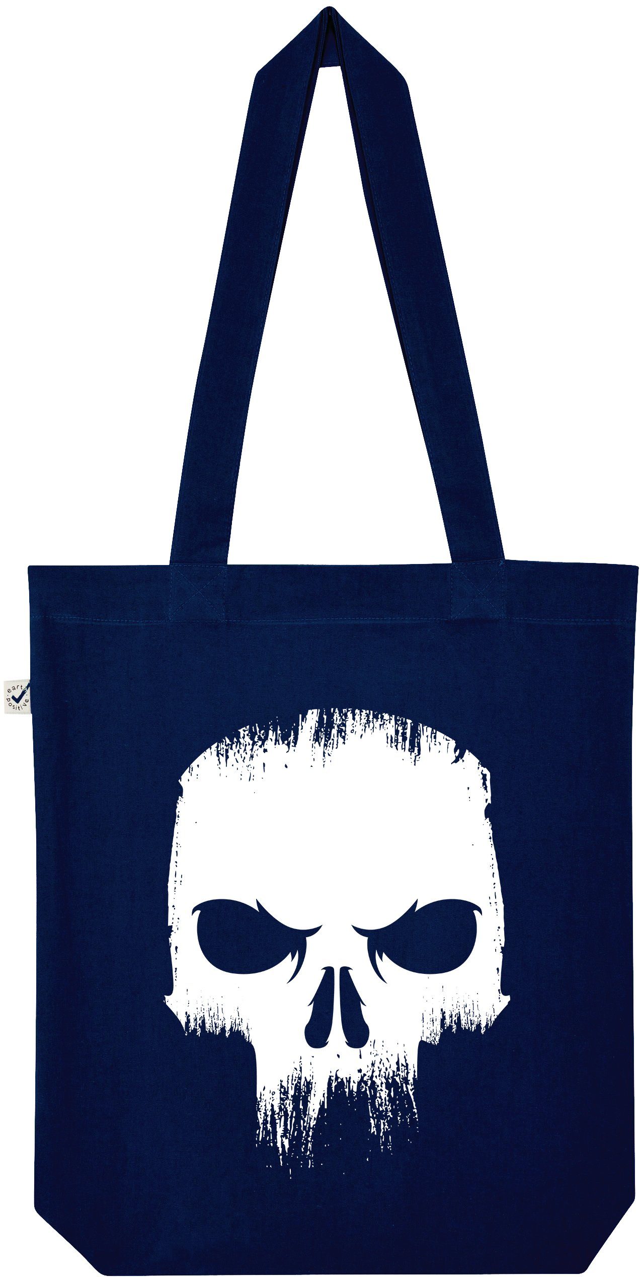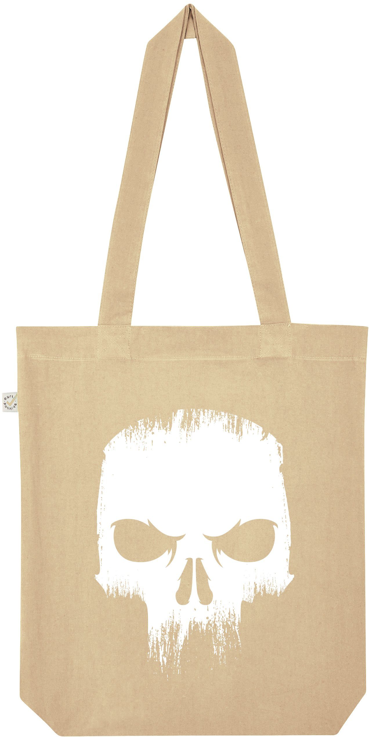 Tragetasche aus 100% Baumwolle mit coolem Motiv und mit lustigem Print von einem wütendem Totenkopf Schädel