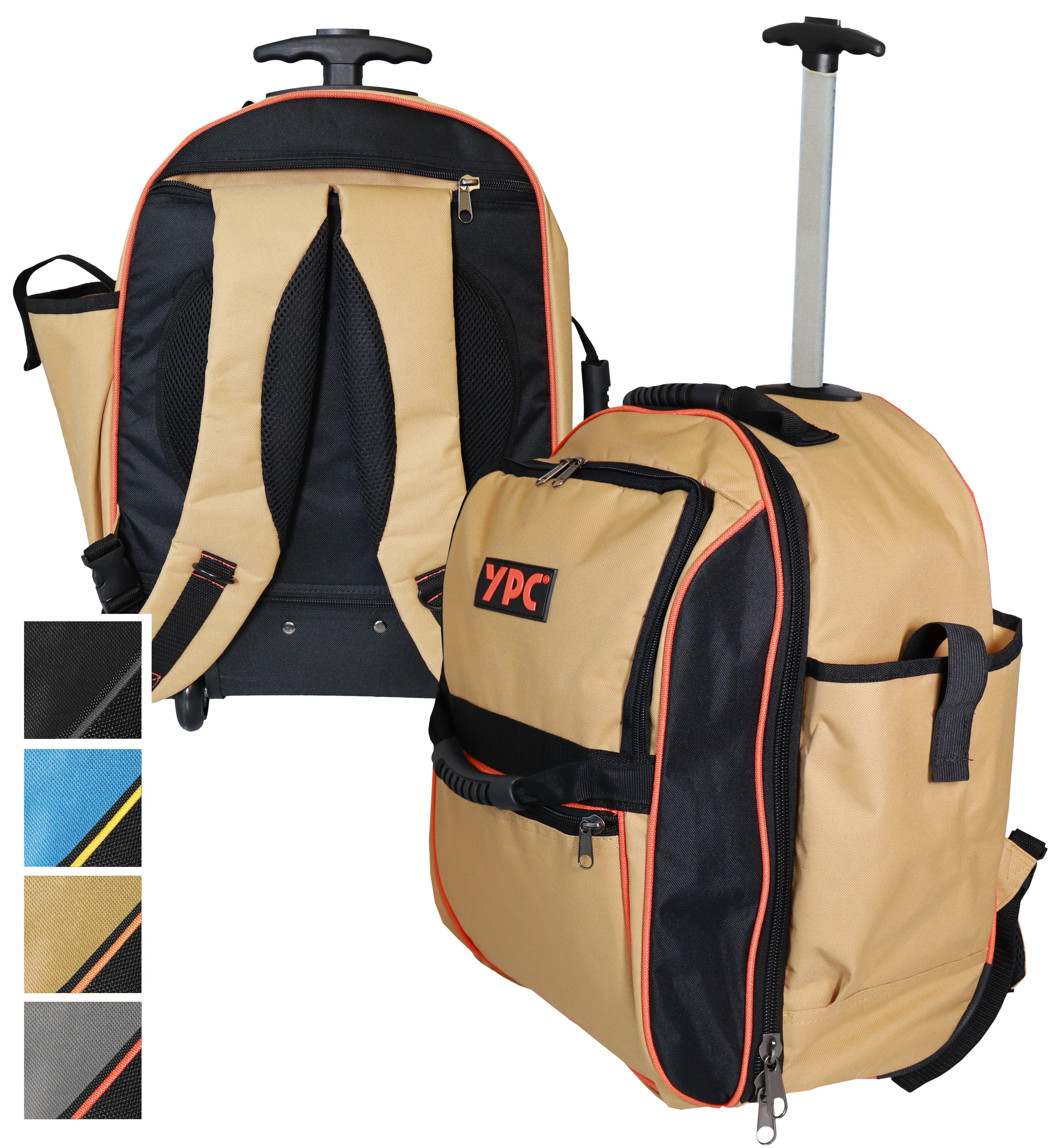 Der "Juggernaut" ist als gepolsterter Rucksack oder Trolley mit Teleskopgriff verwendbar, wobei die Schultergurte bei Verwendung als Trolley unterseitig gelöst und in einem Fach verstaut werden können. Dieser praktische Rucksack wurde aus reißfestem, wasserabweisenden Oxford 600D Gewebe gefertigt und verfügt über vielen Ablagen und Innentaschen für Ausrüstung, Material, Laptop, Schreibmaterial, Mobiltelefon und viel mehr.Die Tasche verfügt über ein großes Hauptfach mit 42x35x22cm, drei Innentaschen mit Reißverschluss, drei Außentaschen mit Unterteilungen.