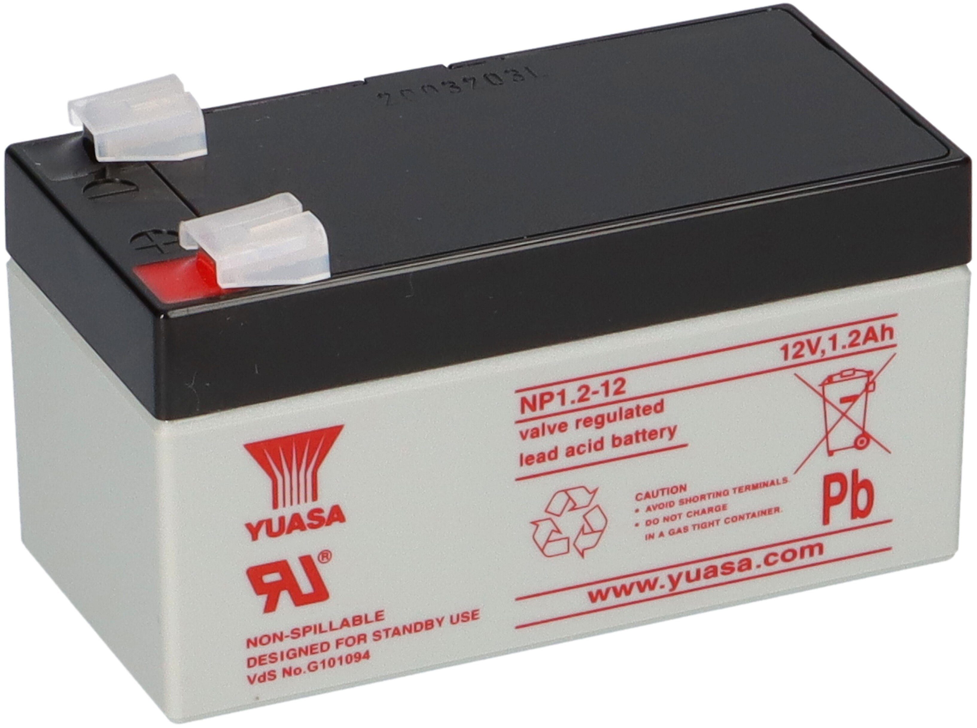 Sichere und leistungsstarke Energiequelle: Yuasa Blei-Akku NP1.2-12 Pb 12V / 1,2Ah VdS, Faston 4,8mm