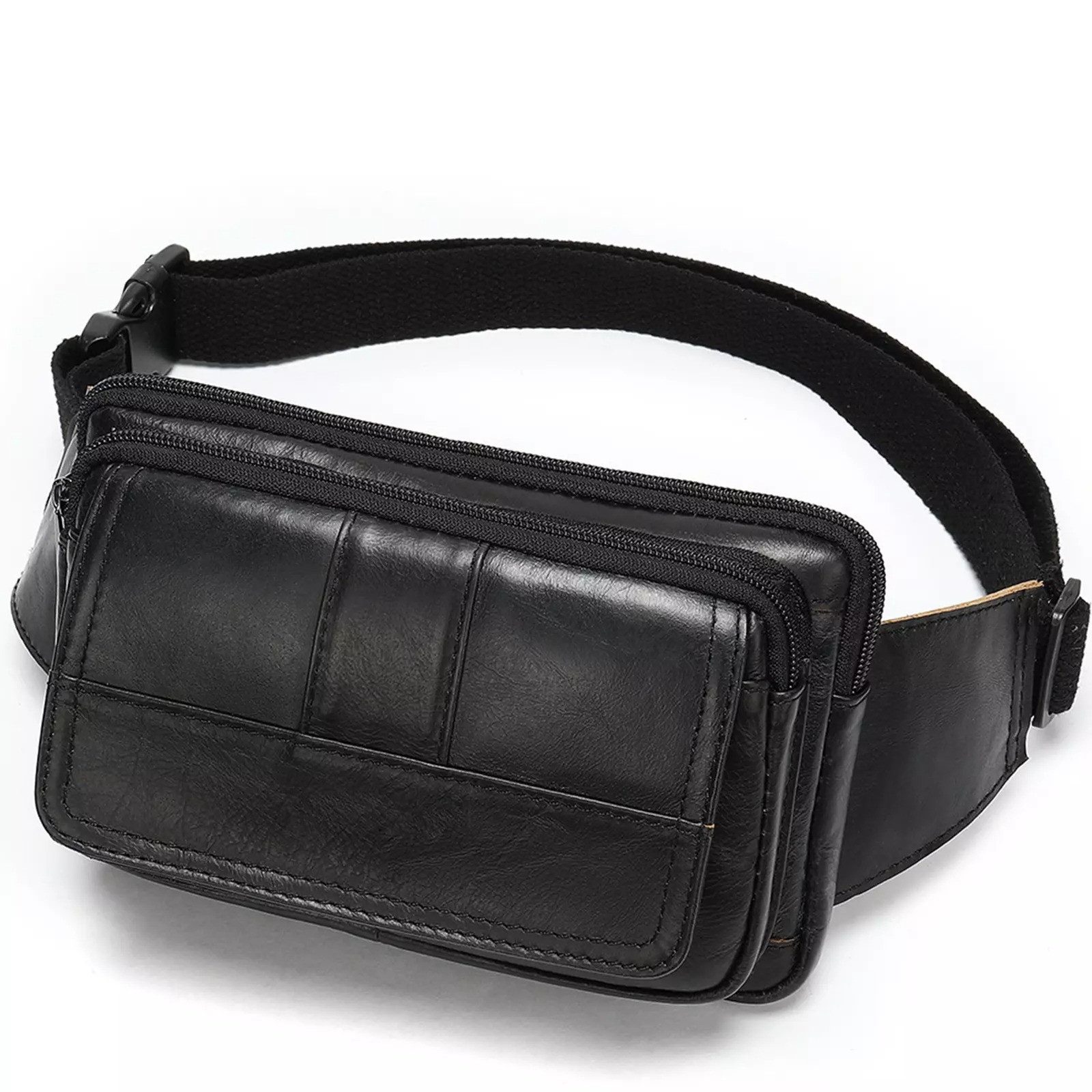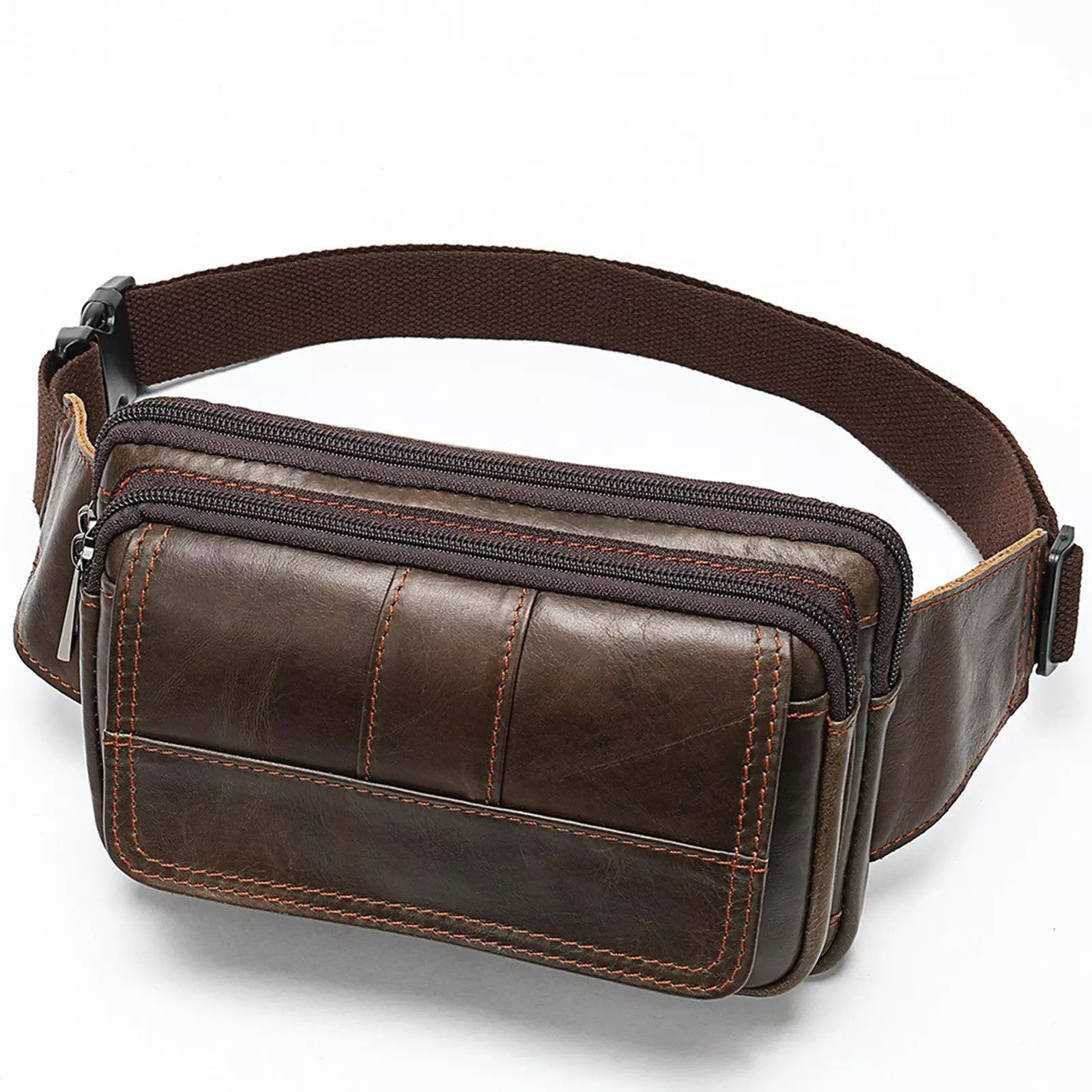 • Herren-Bauchtasche aus echtem Leder mit mehreren Taschen. Hochwertige Lederkonstruktion.