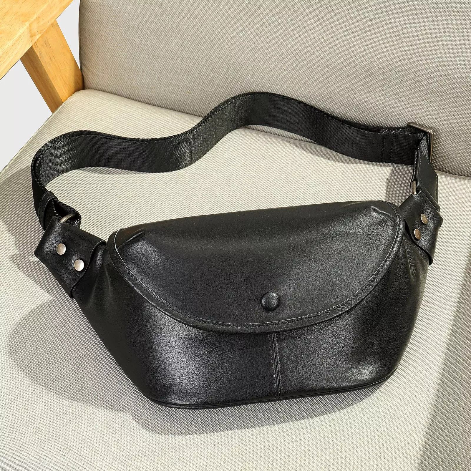 Bauchtasche Herren Leder Umhängetasche Gürteltasche mit Magnetverschluss