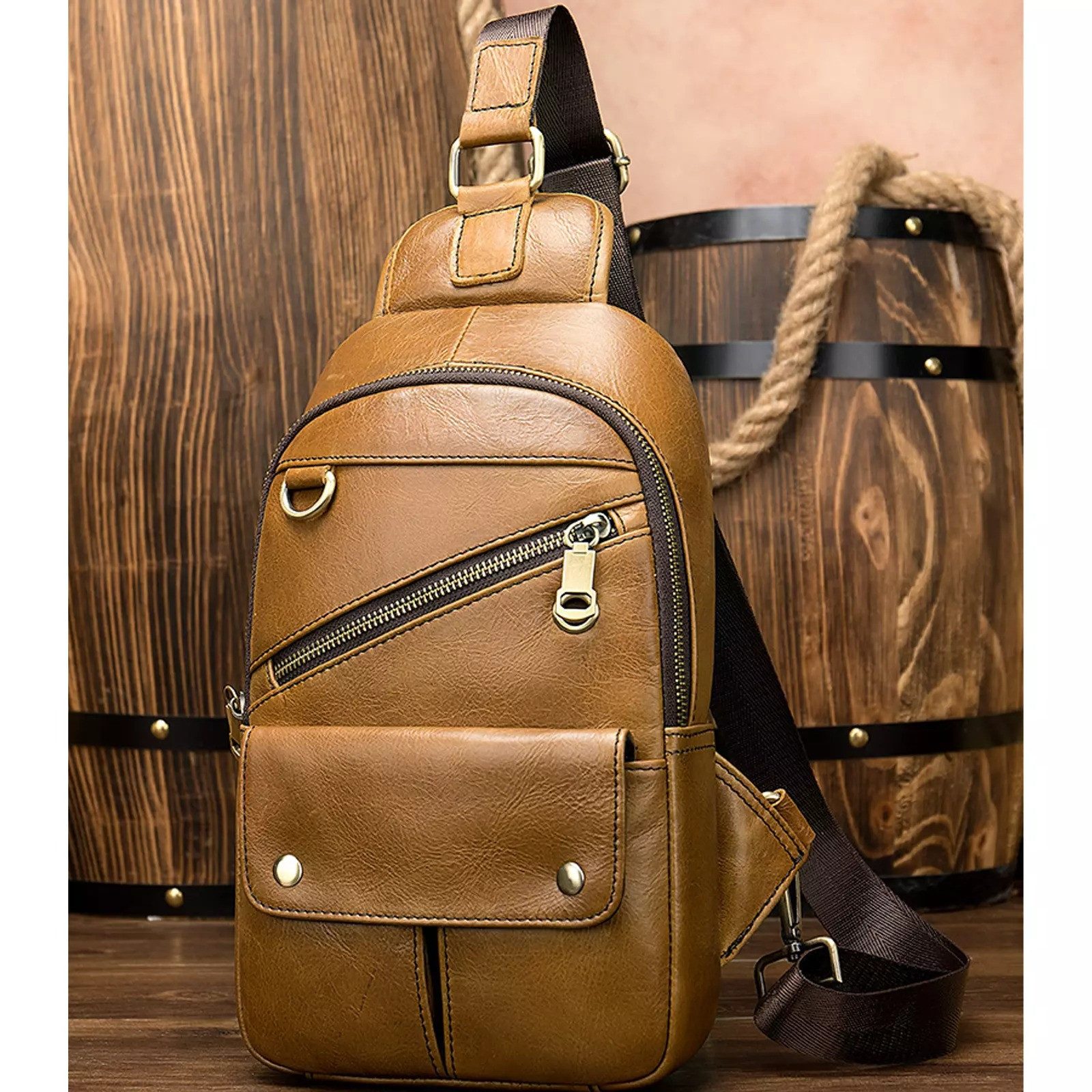 Herren Leder Brusttasche. Größe: 17.5cm x 6cmx 30cm . Mehrere Taschen für organisierte Aufbewahrung. Mit Kopfhöreranschluss, Hauptfach mit großer Kapazität und Seitentasche. Verstellbarer Schultergurt für Komfort. Hochwertige, langlebige Lederkonstruktion.