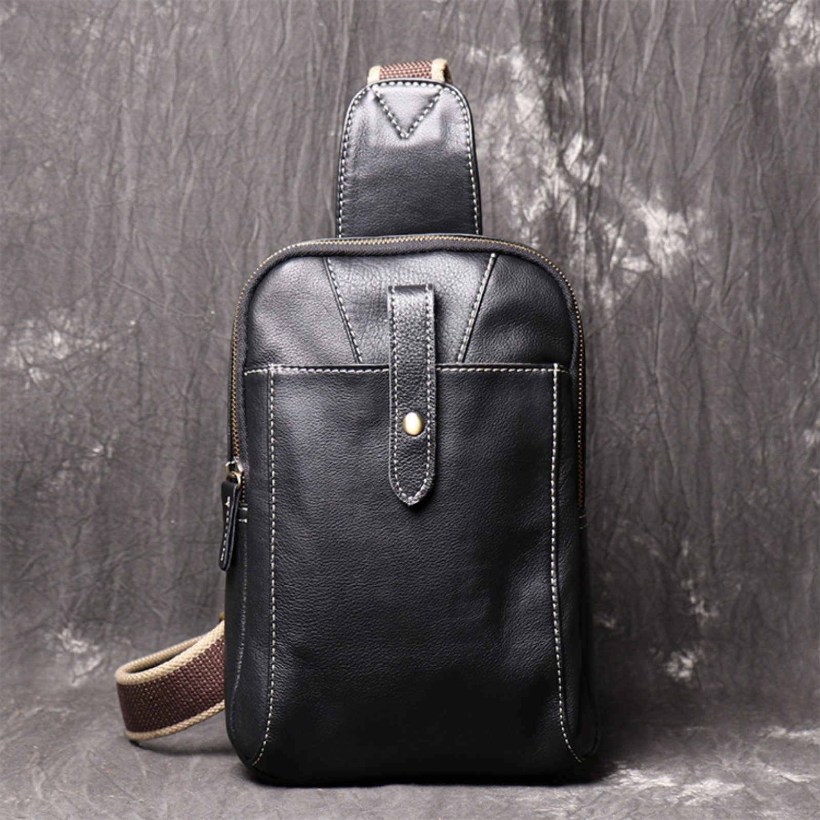 Messenger Bag Herren Leder Sling Bag Brusttasche Crossbody mit Verstellbarem Gurt