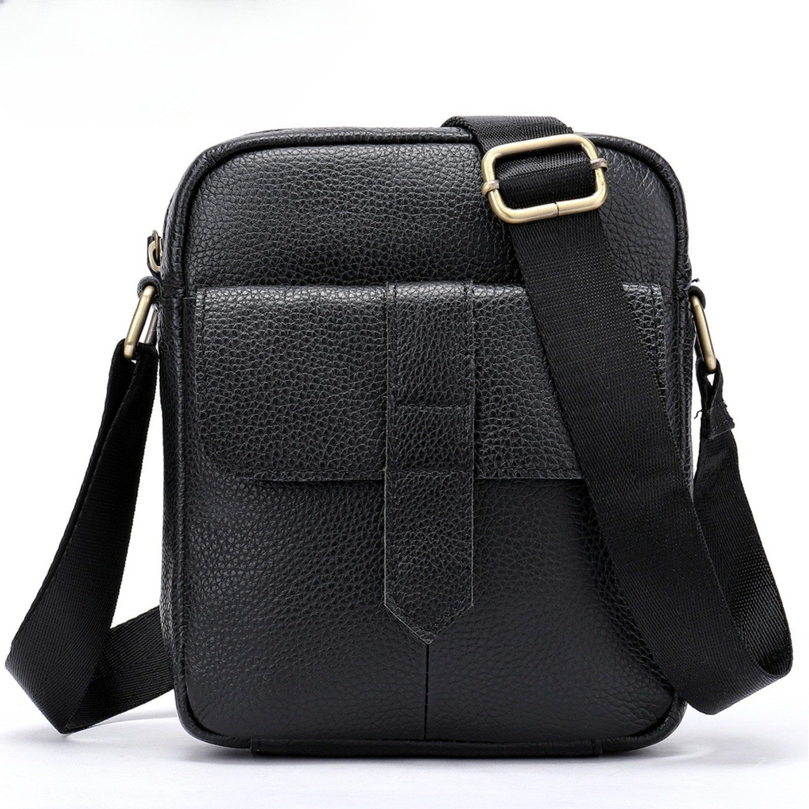 Diese Herren-Umhängetasche aus echtem Rindsleder bietet Haltbarkeit und klassischen Stil. Mit einer kompakten Размер von 18cm x 7cm x 21cm verfügt sie über ein Hauptfach, eine Reißverschlusstasche und ein Innenfach zur übersichtlichen Aufbewahrung. Hochwertige, verschleißfeste Metallbeschläge und ein verstellbarer Schultergurt sorgen für Tragekomfort und Langlebigkeit im Alltag.