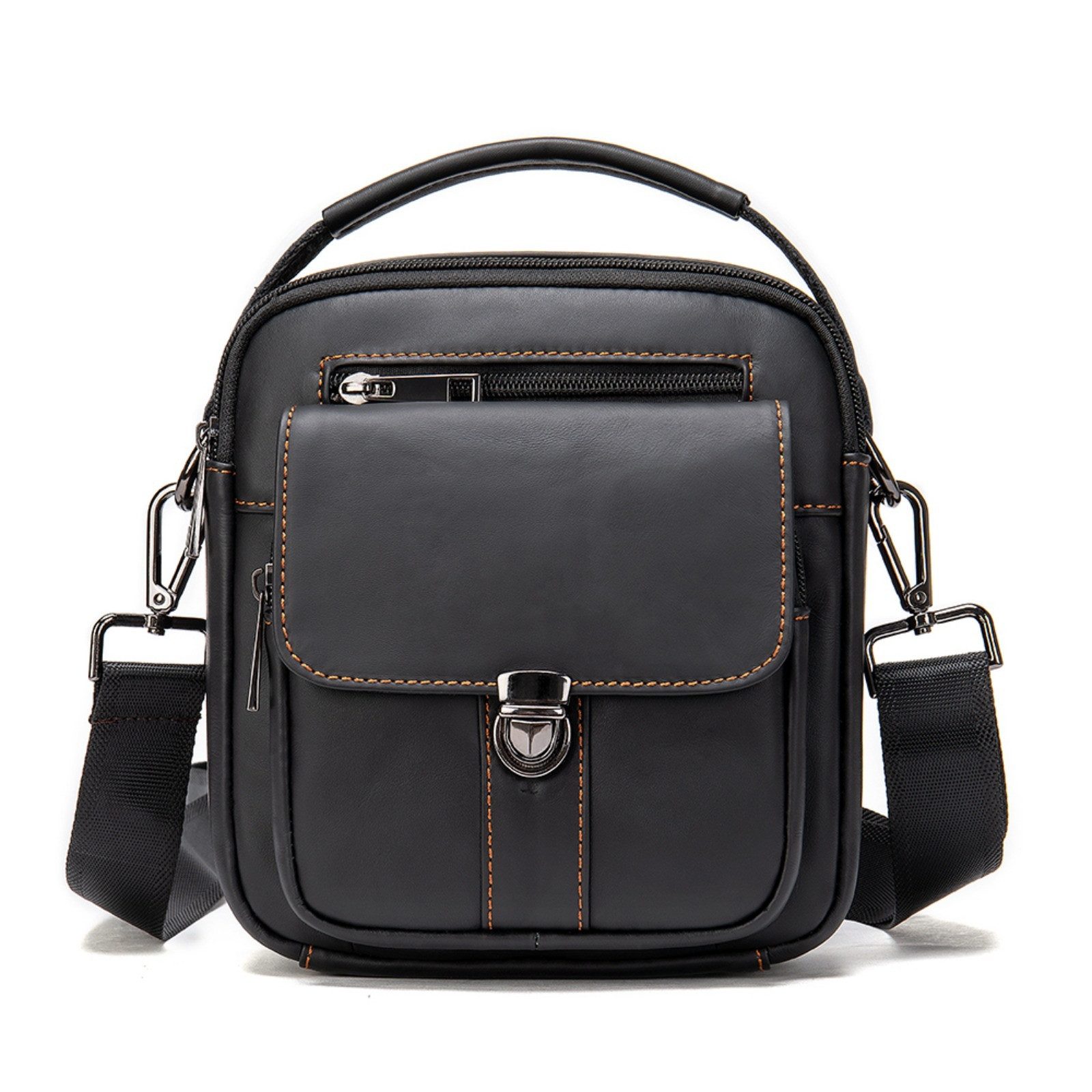 Diese kleine Umhängetasche für Herren aus echtem Rindsleder bietet eine Vordertasche mit Reißverschluss, hochwertiges Innenfutter, verstellbaren Schultergurt und Metallverschluss. Ideal für den täglichen Gebrauch, um Geldbörsen, Telefone und andere wichtige Dinge sicher zu verstauen.
