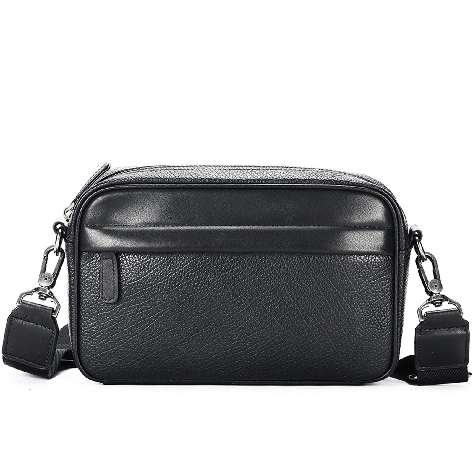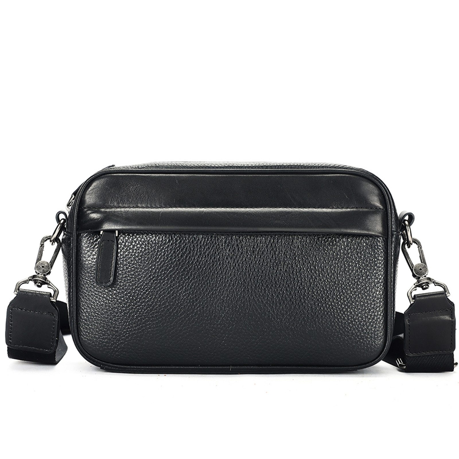 Kompakte schwarze Herren-Schultertasche aus hochwertigem Rindsleder. Mit mehreren Reißverschlusstaschen, robuster Hardware und verstellbarem Riemen für vielseitigen Einsatz.
