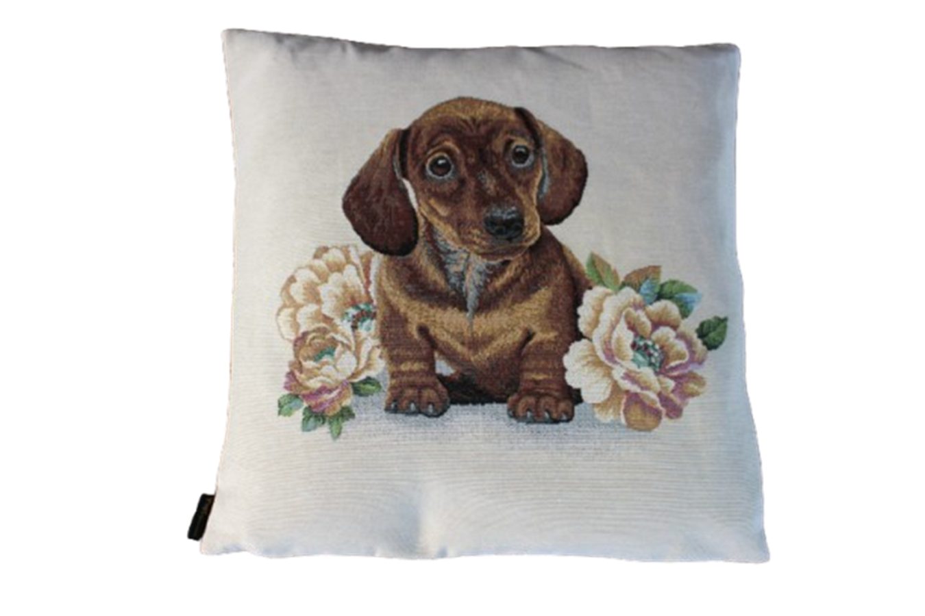 Das besondere Design zeigt niedliche Dackelbabys, die auf der Vorderseite der Kissenhülle liebevoll abgebildet sind. Die Grundfarbe ist ein warmes Beige, das sich harmonisch in viele Einrichtungsstile einfügt und eine gemütliche Atmosphäre schafft.