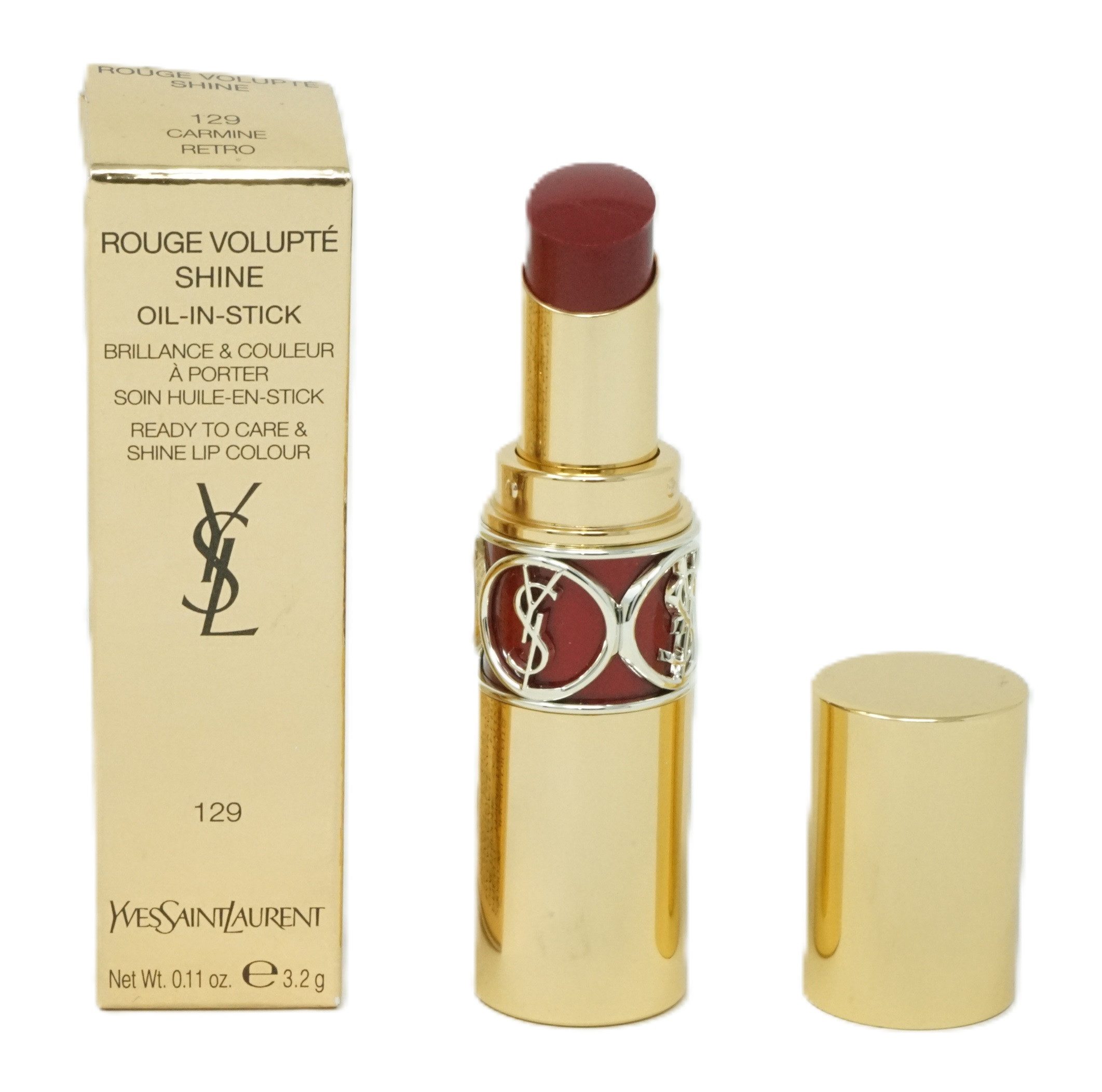 Yves Saint Laurent Rouge Volupté Shine Oil-in-Stick 129 Carmine Retro ist ein luxuriöser, pflegender Lippenstift, der für ein glänzendes, feuchtigkeitsspendendes Finish sorgt Die Öl-in-Stick-Technologie versorgt die Lippen mit reichhaltiger Pflege, während der Farbton Carmine Retro ein lebendiges, klassisches Rot ist, das für einen eleganten, zeitlosen Look sorgt Der Lippenstift hinterlässt die Lippen weich und geschmeidig und sorgt für eine langanhaltende, brillante Farbe