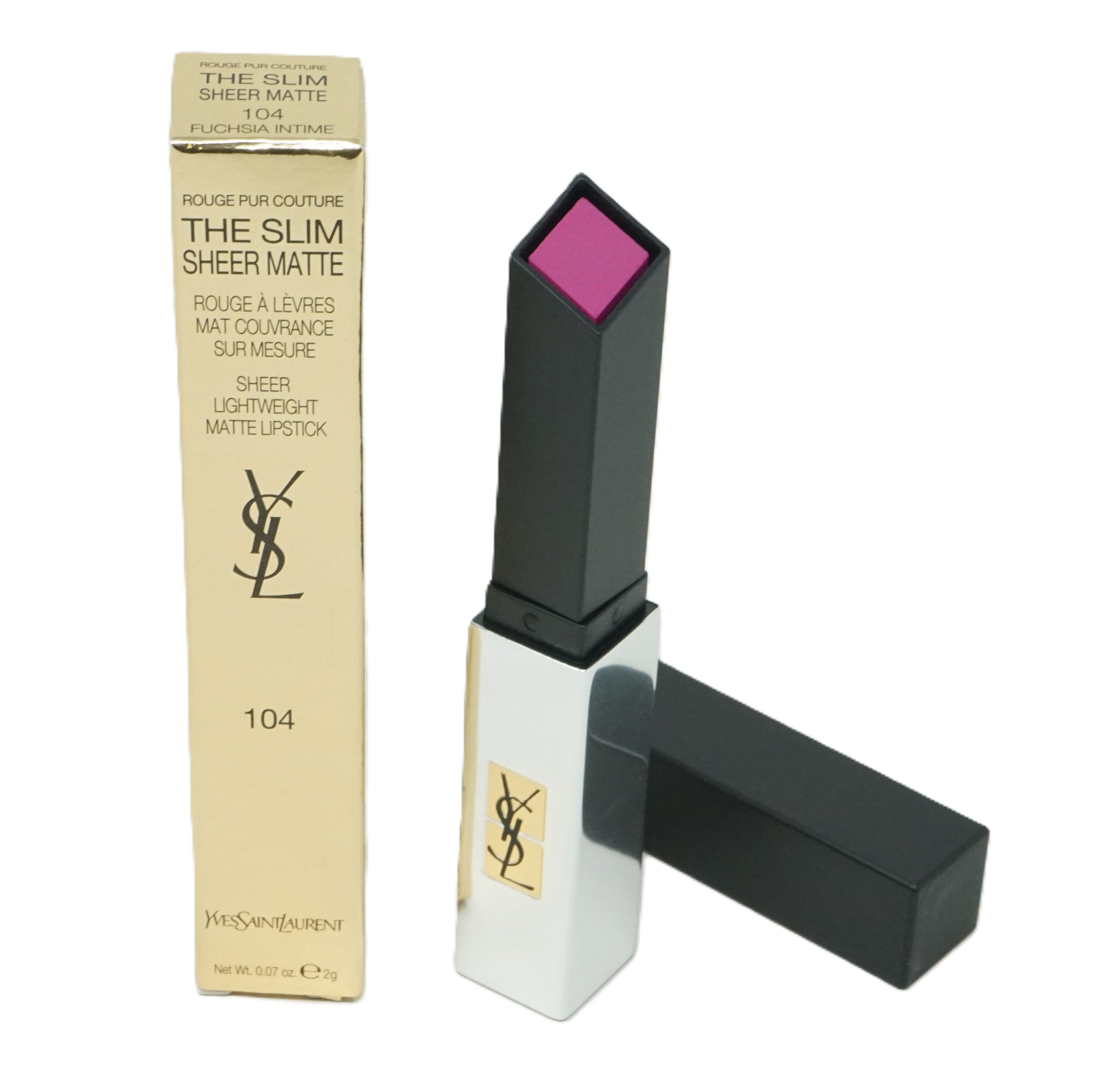 Der Yves Saint Laurent Rouge Pur Couture The Slim Sheer Matte im Farbton 104 Fuchsia Intime kombiniert die Leichtigkeit eines Sheer-Lippenstifts mit einem matten, samtigen Finish Die innovative Formel sorgt für ein federleichtes Tragegefühl und eine natürliche Farbintensität 104 Fuchsia Intime ist ein zartes Fuchsia mit einem dezenten, eleganten Finish, das den Lippen eine raffinierte und dennoch lebendige Farbe verleiht, während es ein mattes, modern zurückhaltendes Aussehen bewahrt