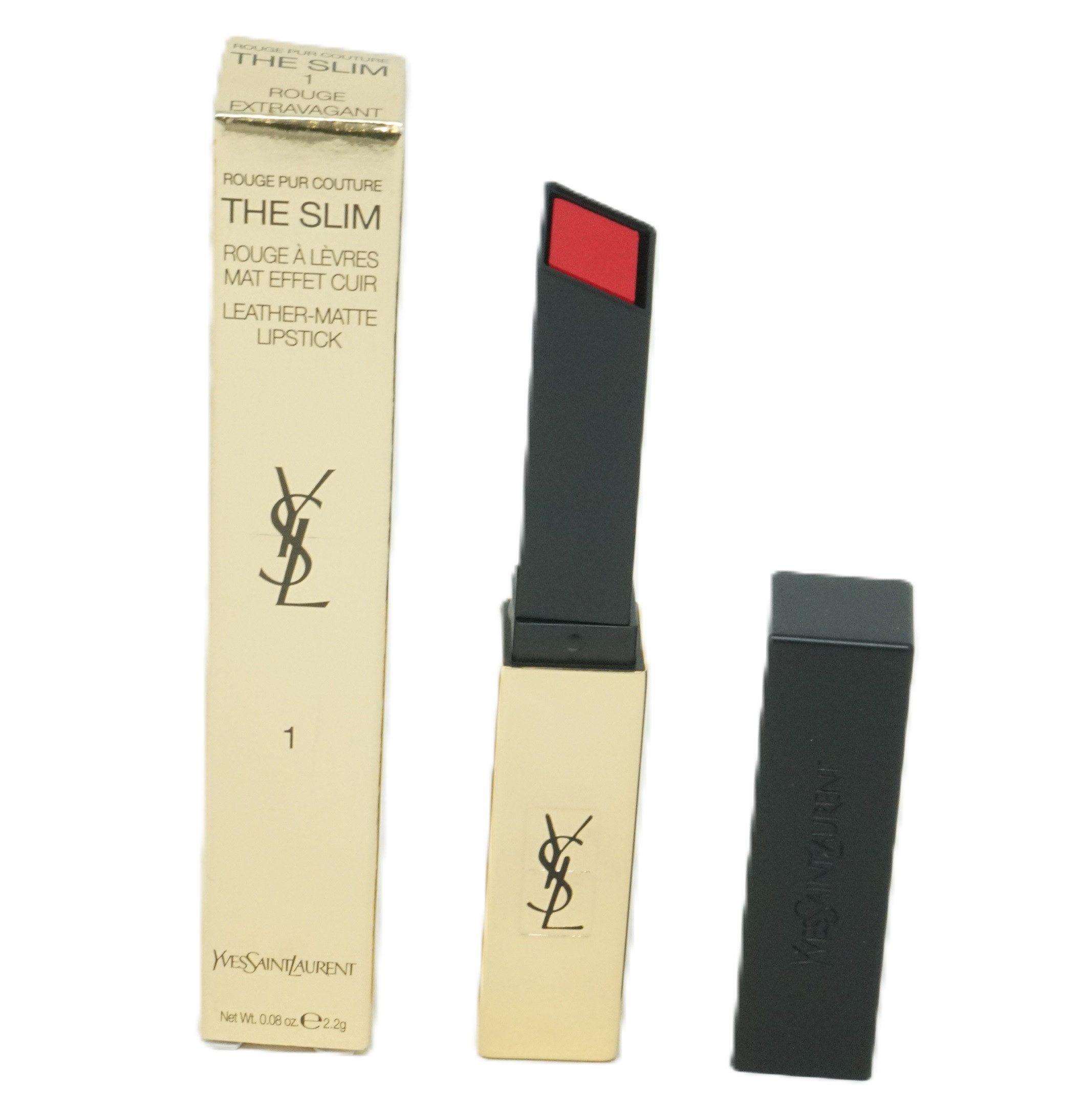 Yves Saint Laurent Rouge The Slim Matte 1 Rouge Extravagant ist ein hochpigmentierter, luxuriöser Lippenstift mit einem intensiven, ultra-matten Finish Die geschmeidige, cremige Formel sorgt für ein angenehmes Tragegefühl, während die Farbe für ein makelloses, langanhaltendes Ergebnis sorgt Farbton 1 Rouge Extravagant ist ein klassisches, strahlendes Rot, das für zeitlose Eleganz und Selbstbewusstsein steht