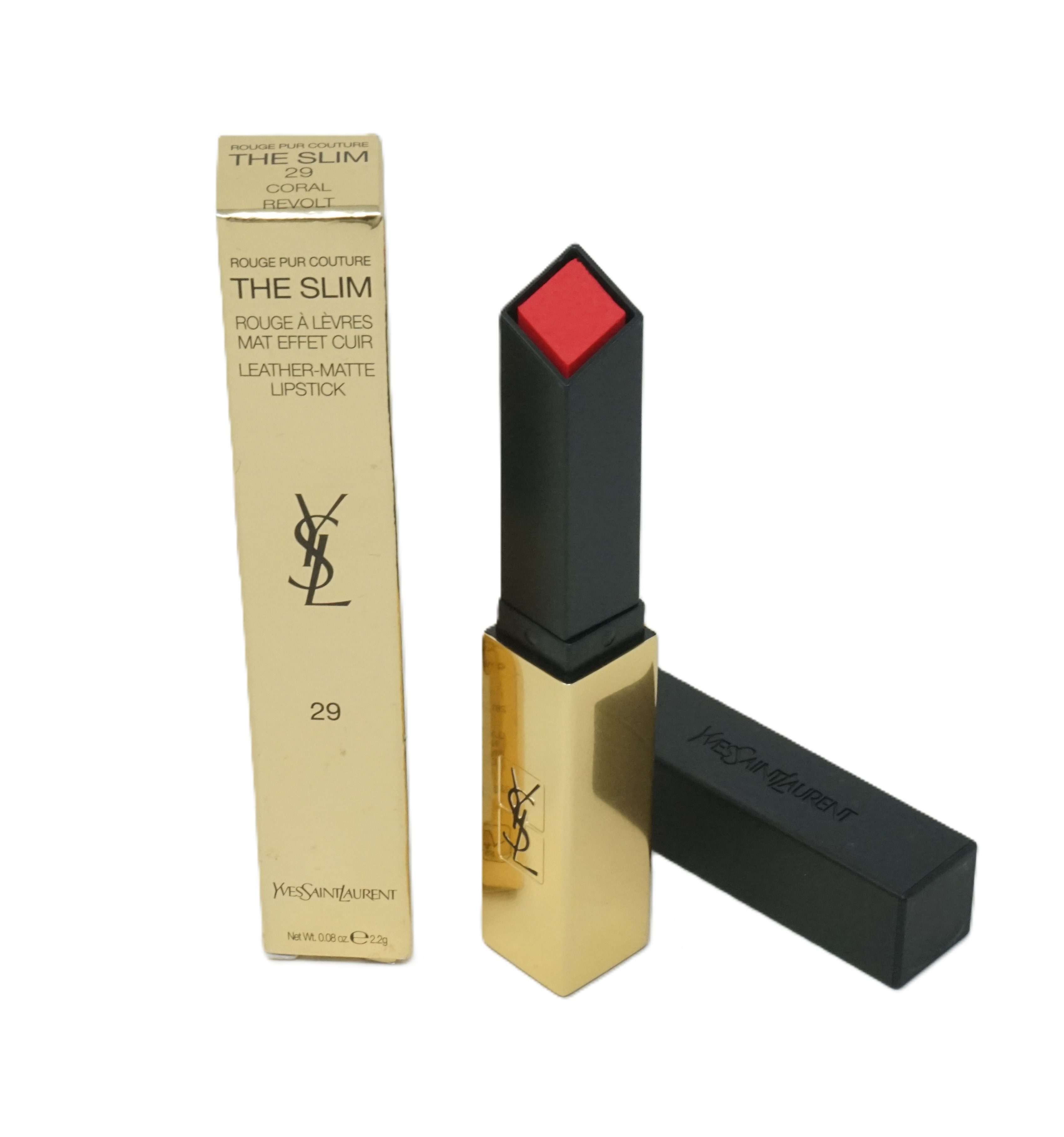 Yves Saint Laurent The Slim Lipstick in der Nuance 29 Coral Revolt ist ein kräftiger Korallton mit moderner Leder Matt Textur