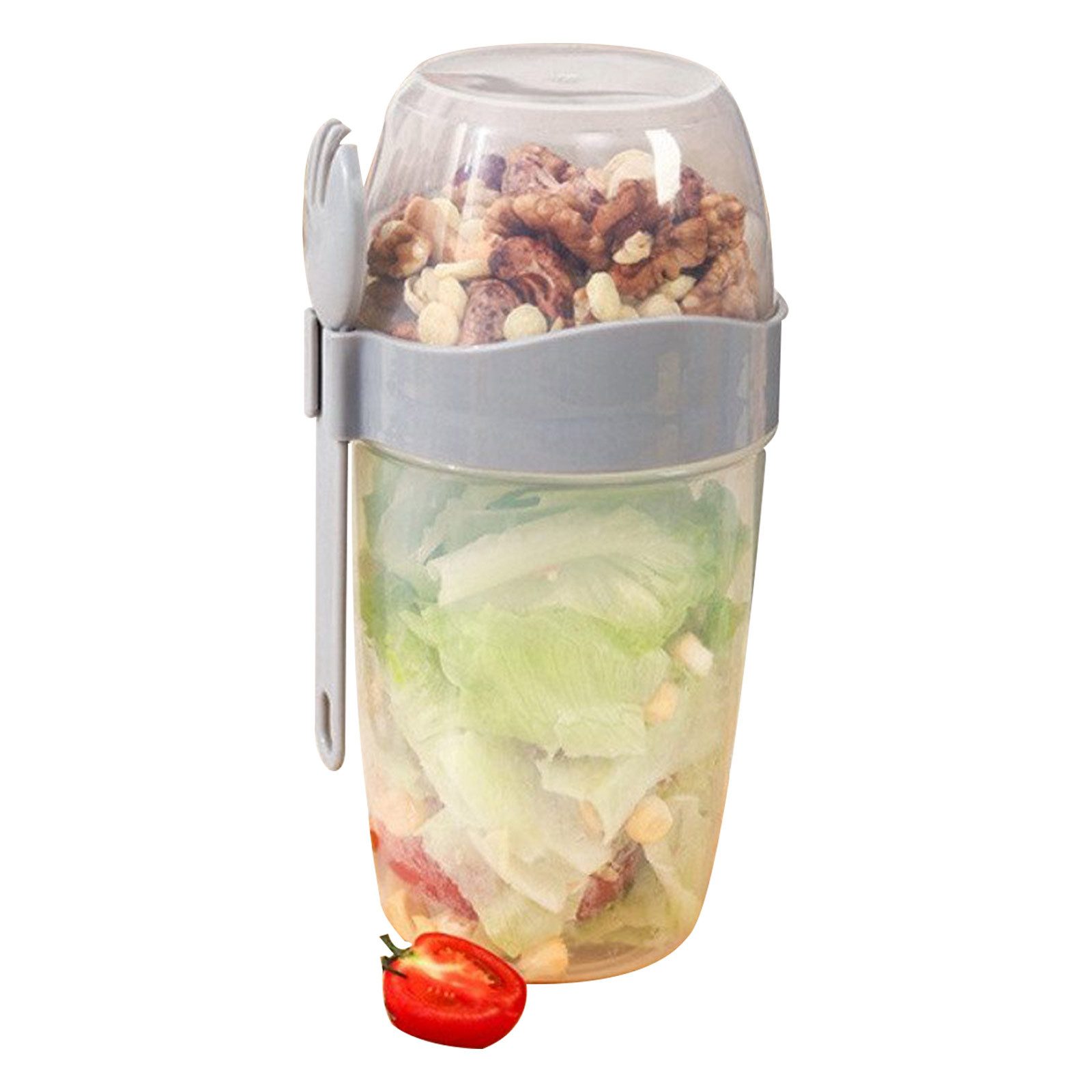 ERGONOMISCHE TASSE MIT GABEL: Tragbare Müslitasse mit Gabel. Verbesserter Salatbehälter mit einer zusätzlichen Schicht von ergänzenden Lebensmittelbehältern, zwei separaten Fächern mit farbigen Kunststoffgabeln. Der Sicherheitsdeckel verhindert das Verschütten Ihrer schön zubereiteten Mischungen.